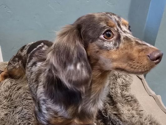 Our Chinese Shar-Pei puppies include fawn sable, fawn, apricot dilute, isabella dilute, lilac dilute, cream, cream sable, cream dilute, chocolate dilute, brown, blue sable, blue dilute, black sable, black, brown sable, white, and blue. Dachshund puppies include piebald, cream, black, chocolate, brindle, chocolate and cream, gray (blue) and tan, chocolate and tan, black and tan, black and cream, and dapple. Colors will vary depending on the parent dogs.