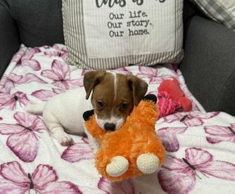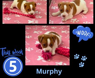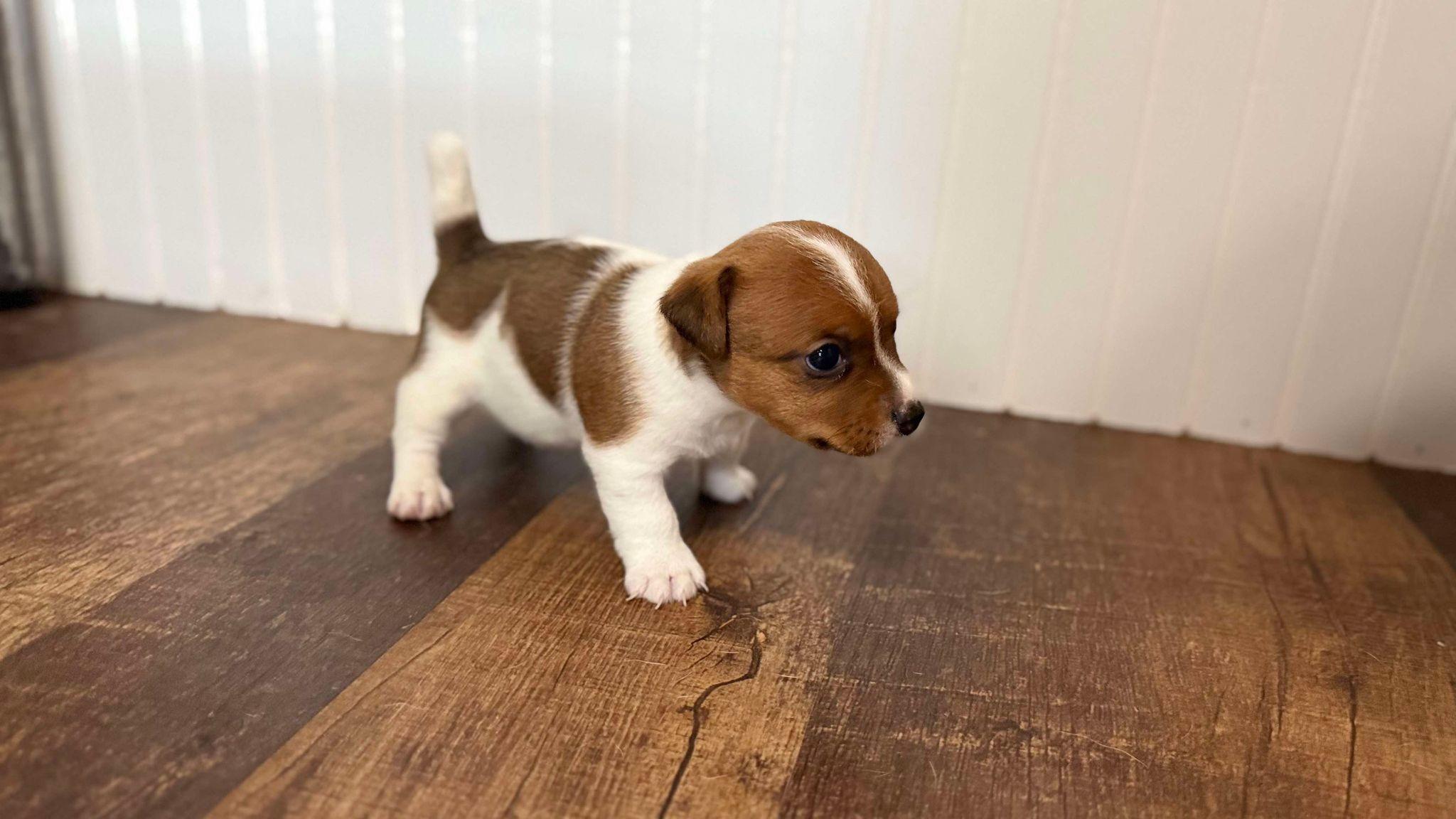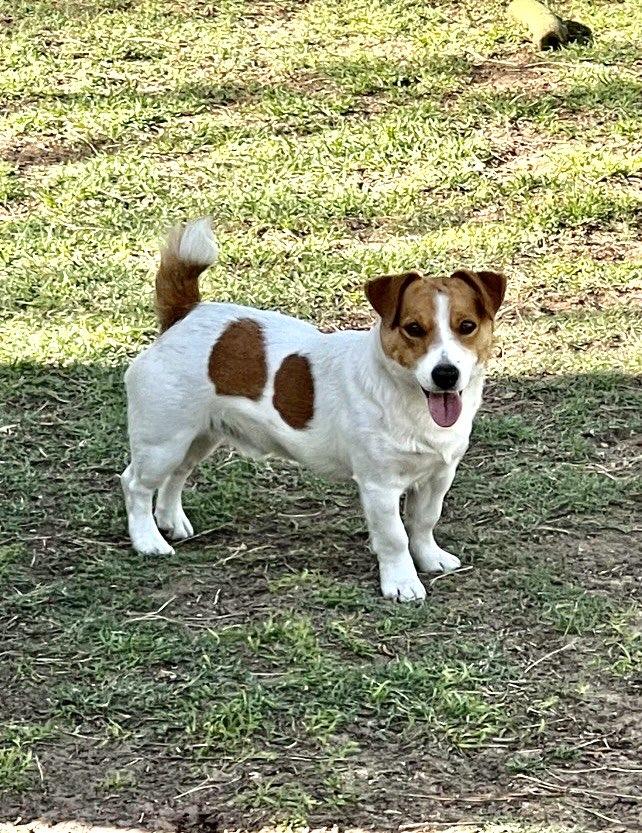 Ruby is a stout girl, she is protective, yet so loving all at the same time. She is all business most of the time, but loves getting her belly rubbed and attention. She is loyal and has the natural Jack Russell hunting instincts. She is 15 pounds and 10.5 inches tall. She is AKC and EJRTCA registered.