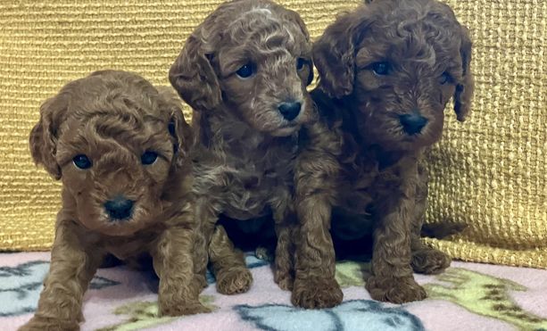 Our puppies include brown and apricot. Colors will vary depending on the parent dogs.