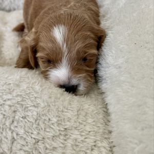 Willow is a female Cavapoo. Carefully selected as a great representative of her breed, Ruth decided to make her part of their program. Ruth has passed Good Dog’s screening process, which involved a review of their breeding practices, environment, and the mental and physical health of their dogs.