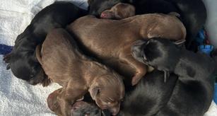 Our puppies include black and rust and red and rust. Colors will vary depending on the parent dogs.