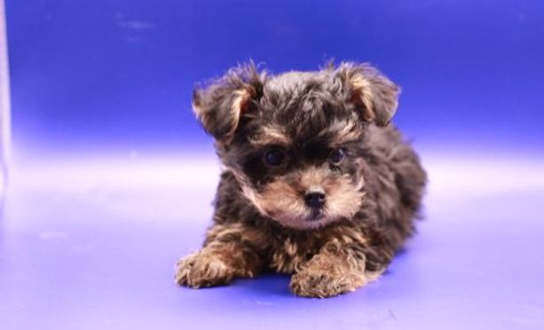 Bella is a beautiful 8 lbs Blue and Gold curly haired Yorkie. Her mom is a gold Yorkie and her dad is a silver Yorkie. She is very affectionate with a gentle demeanor and playful temperament. Bella is not yappy. She is incredibly smart, very protective and brave too. Bella is a lovely indoor pup that is potty trained.