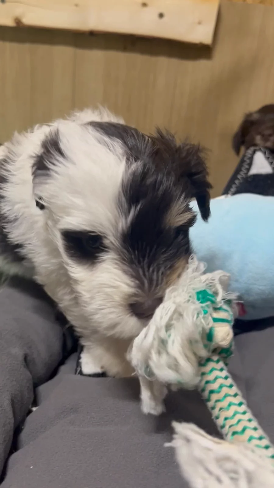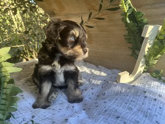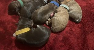 Aimee was wonderful to work with. She sent me updates, pictures, and videos weekly and was very attentive when it came to raising the puppies. My girl is extremely smart and has had virtually no trouble with potty training. I love her and have enjoyed watching her personality develop and change over the last few weeks!