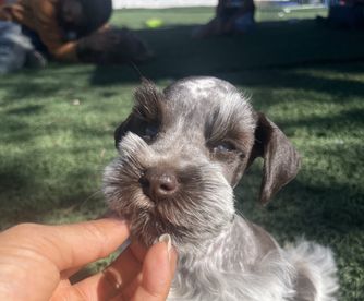 I highly recommend Aimee as a dog breeder. She gave me my beautiful Schnauzer and was amazing throughout the whole process, kind, professional, and clearly passionate about her dogs. My pup is healthy, well socialized, and an absolute joy. Thank you, Aimee!