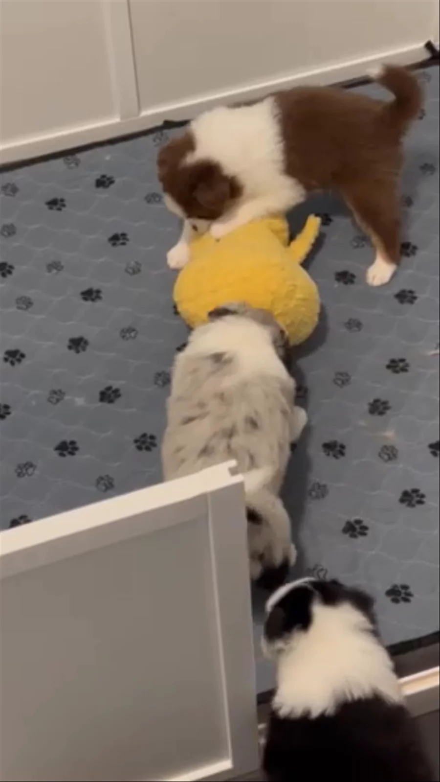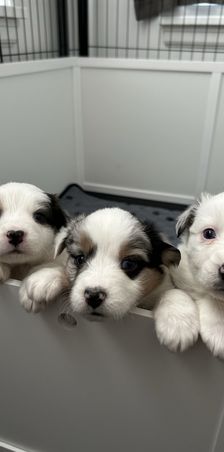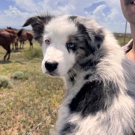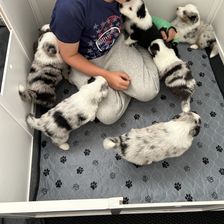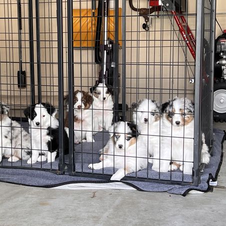 Our puppies include blue merle, black tri-color, and red tri-color. Colors will vary depending on the parent dogs.