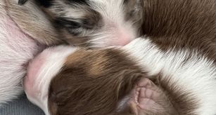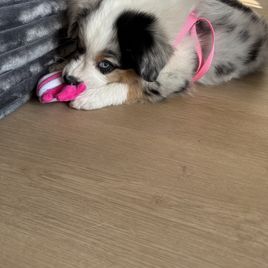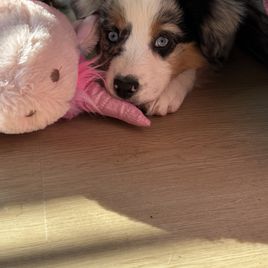 Myra is a wonderful breeder who cares so much about her dogs and puppies. She truly treats them like family members, and she was great with communicating information to me about my puppy from start to finish. She is also very knowledgeable about the breed and the parent’s bloodline. Both parents have impressive genetics and we couldn’t be happier with our healthy, smart and super lovable Aussie pup from Myra!!!!