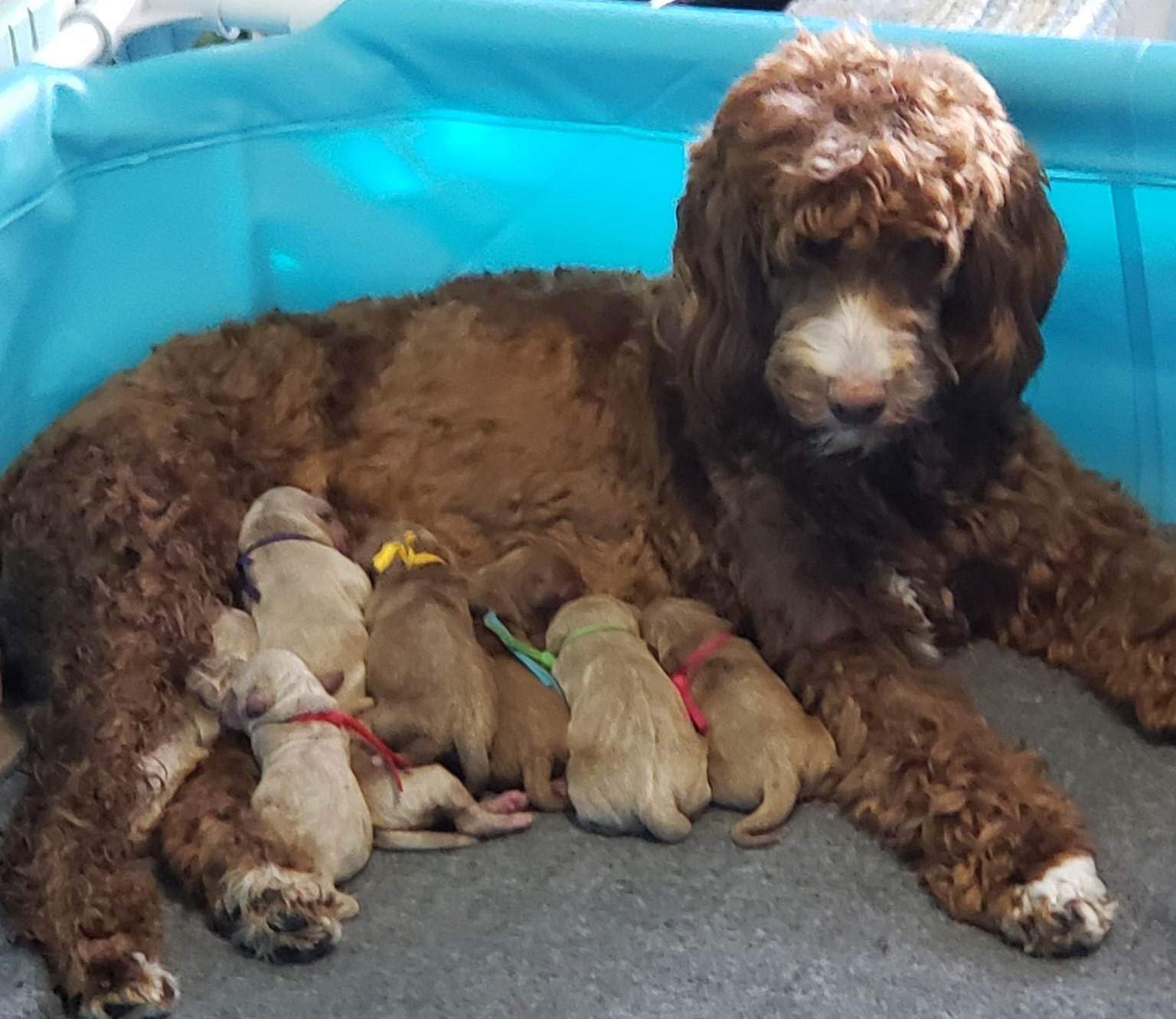 Our puppies include cream, red, chocolate, black, and parti. Colors will vary depending on the parent dogs.