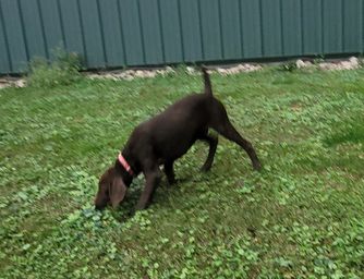 At 10 months old, we took Kelli to a NAVHDA trial and she took Prize 1 with perfect score of 112. She loves field work.