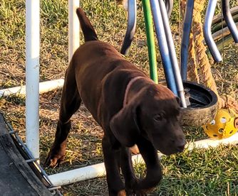 Our puppies include liver and black. Colors will vary depending on the parent dogs.
