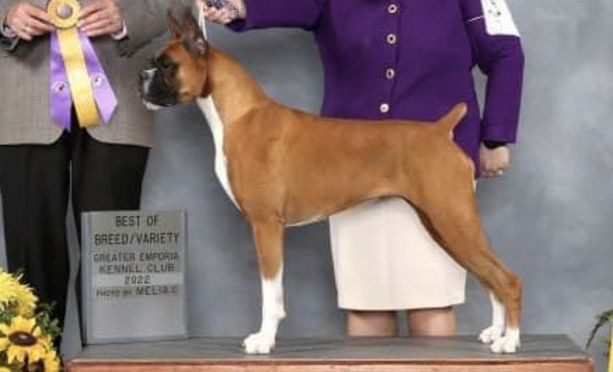 I'm Joyce P., the breeder behind Joyce's Boxers located in Kansas. We're committed to raising well-rounded Boxer puppies who can excel in any venue with their new families. We are responsible breeders who are passionate about our dogs. They’re central to our lives, and we are proud of their accomplishments. We enjoy participating in conformation events and staying involved in the breed.