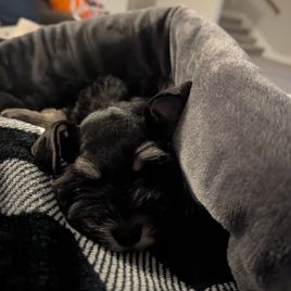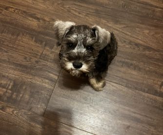 Cosette is the perfect puppy, she has the sweetest disposition and is very smart. She was already mostly potty trained to use a pan when I brought her home, which made the transition so much easier. I couldn’t be happier with my choice, and I highly recommend Joyce to anyone looking for a miniature schnauzer!