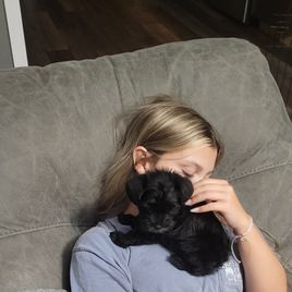 I had a great experience getting my miniature schnauzer from Joyce! She was so welcoming when I picked up the puppy and made the entire process super easy. Joyce really took the time to answer all of my questions and even checked in to make sure Cosette was settling in well - you can tell she really cares about her puppies!