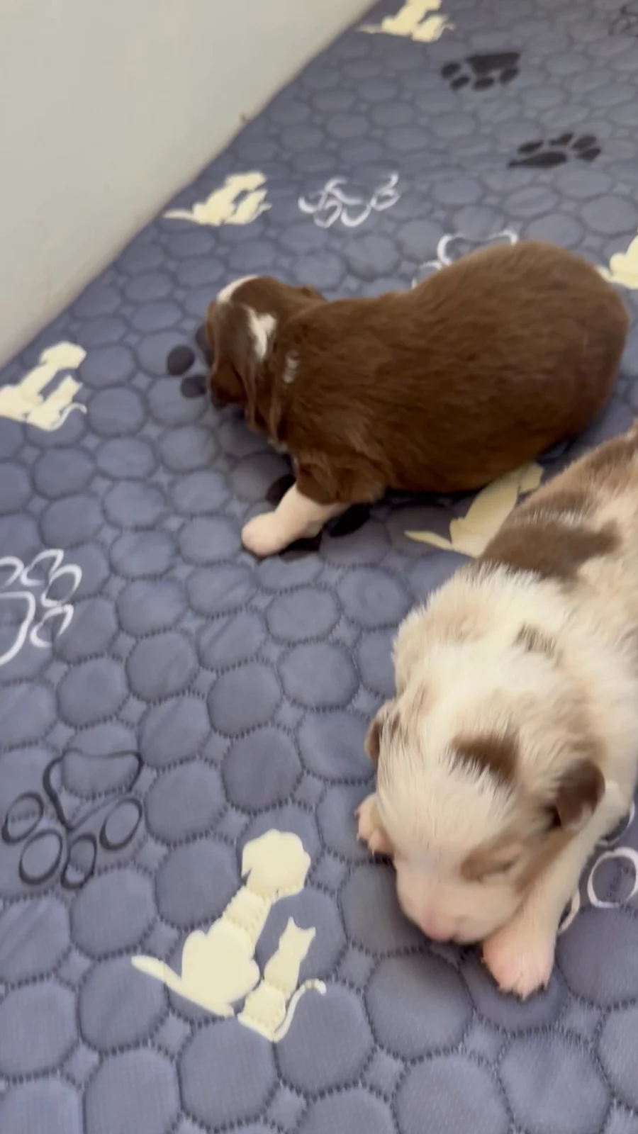 Murphy and Cameron’s puppies are starting to move around a little more another week. They should be up on their feet.