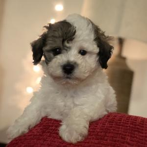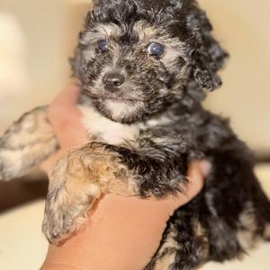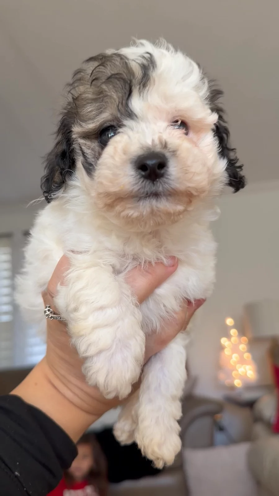 Highly intelligent and easily trained, she picks up commands quickly and show a natural obedience. Whether it’s playtime or quiet snuggles on the couch, this Maltipoo brings joy and warmth to everyone they meet.