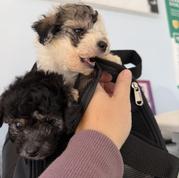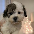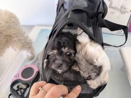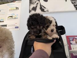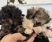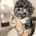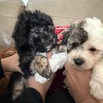 These precious puppies are the perfect blend of sweetness and charm. With soft, fluffy coats and expressive eyes, they have an irresistible teddy-bear look. One features a beautiful white-and-gray coat with unique markings, while the other has a rich, dark curly coat—both absolutely stunning in their own way.