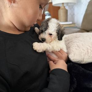 Our adorable Maltipoo is just the right size at 9 lbs—small enough to cuddle but full of personality. Kind-hearted, loving, and polite, they make the perfect family companion. She is excellent with children, gentle, affectionate, and always is there for them.