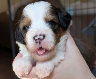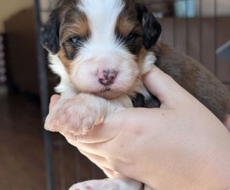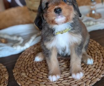 I saw Joy’s listing for Bernedoodle and messaged her for more information. She was very responsive and we talked a fair amount about my family and the type of dog and temperament that we were looking for. With 2 young kids, we needed a dog that would be gentle and patient, ready to play but also docile and cuddly. Joy assured me that the puppy we had messaged about totally fit the bill - and she was right! We FaceTimed so we were able to see him in his element and answered each others questions. Coordinating pickup, payment, and all the details was easy! And our puppy has been the perfect fit for our family. He’s handsome, in good health, and the exact temperament we hoped for. I’ve already referred a family member to Joy and would happily recommend her to anyone. My experience is a 10/10!