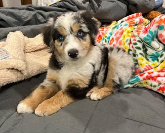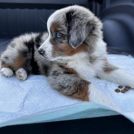 Our Australian Shepherd puppies include black, red merle, blue merle, and red. Shih Tzu puppies include black, liver, and gold and white. Miniature Australian Shepherd puppies include blue merle, red merle, red, and black. Colors will vary depending on the parent dogs.