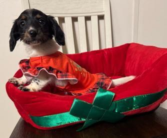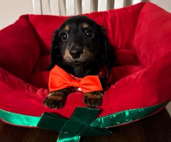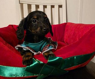 I'd been thinking about getting a dog for a long while, thought I'd adopt, but I grew up with a dachshund and couldn't get the breed out of my mind. Ultimately I took the plunge, and found my baby with Rachel at J&R Macias. Little Trinka (short for Katrinka my childhood dog) is everything I wanted. Rachel was super responsive, her dogs are beautiful and obviously well cared for - I highly recommend. Looking forward to Christmas with my new pup!
