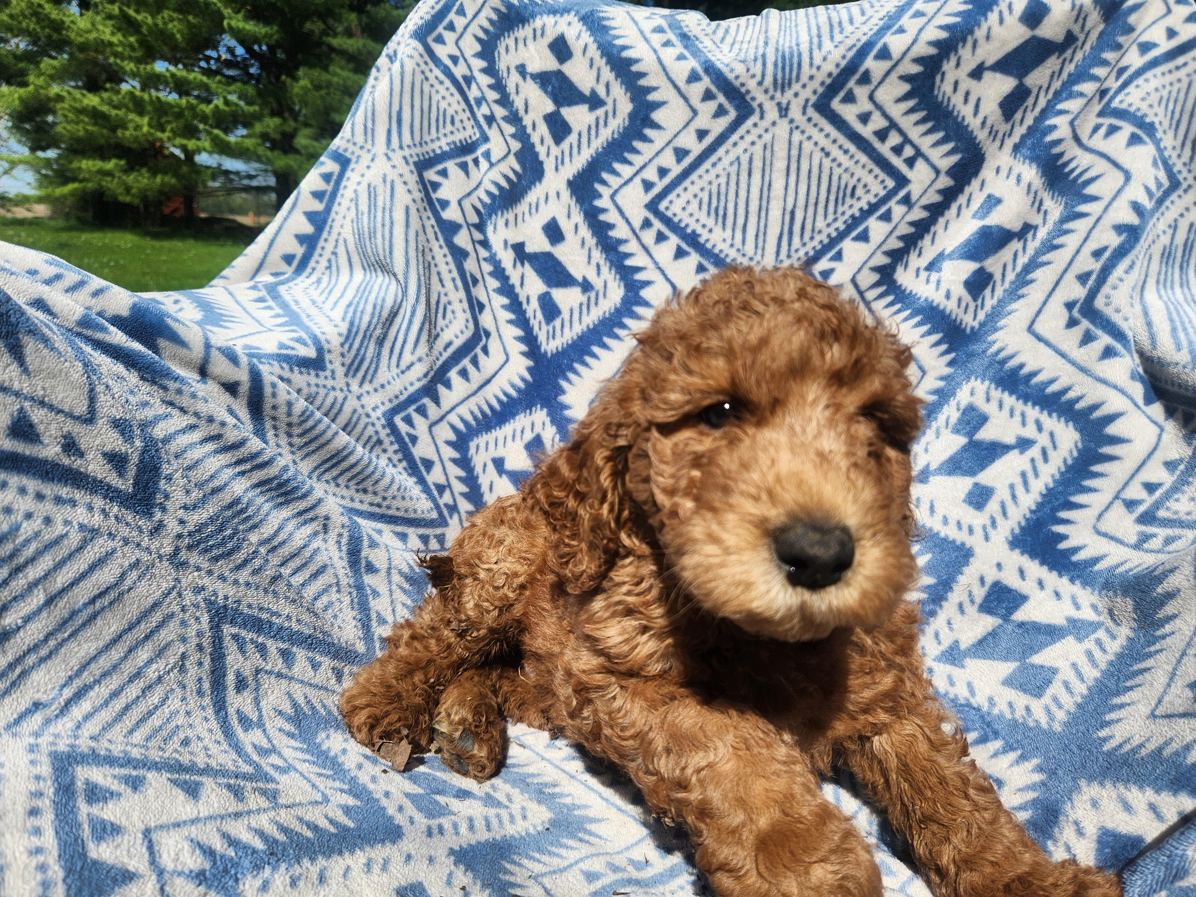 Teeger is our sweet girl. She is the best pet that we have ever had, so we decided to breed her so that you can have the best pet you have ever had. She is a fun and beautiful F1 labradoodle with perfect health as is shown in her Embark and vetinary results.