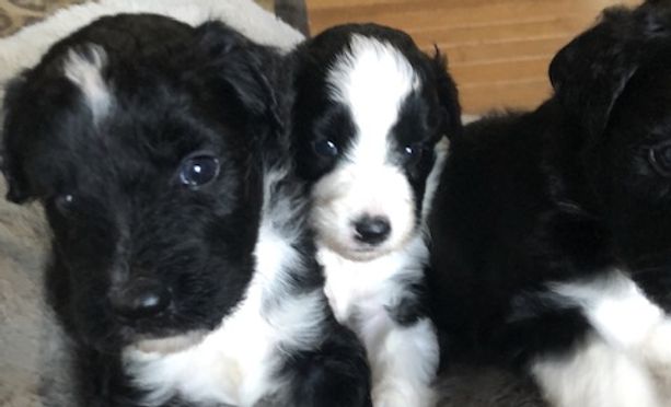 Our puppies are black & white. Colors will vary depending on the parent dogs.