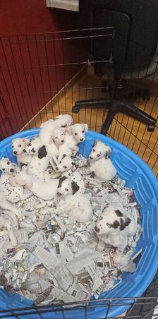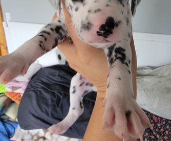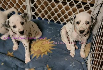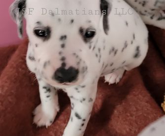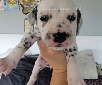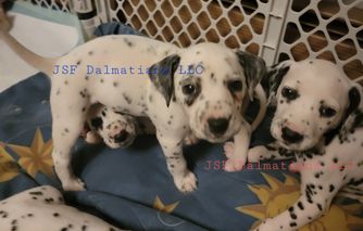 I'm Teresa J., the breeder behind JSF Dalmatians LLC located in Conrath, WI. Along with my boys. We focus on luas, low uric acid, not prone to kidney stones like most Dalmatians. We still have Hua, high uric acid, as we work to extend our lines and improve the overall health of the Dalmatian breed, We have produced black, liver, lemon, Orange and tris. Plus long coats as well as short coats. Our puppies are raised in our home with 3 boys. They get their 1st vaccines, microchiped and we do extensive deworming. Our puppies are vet check and baer tested.