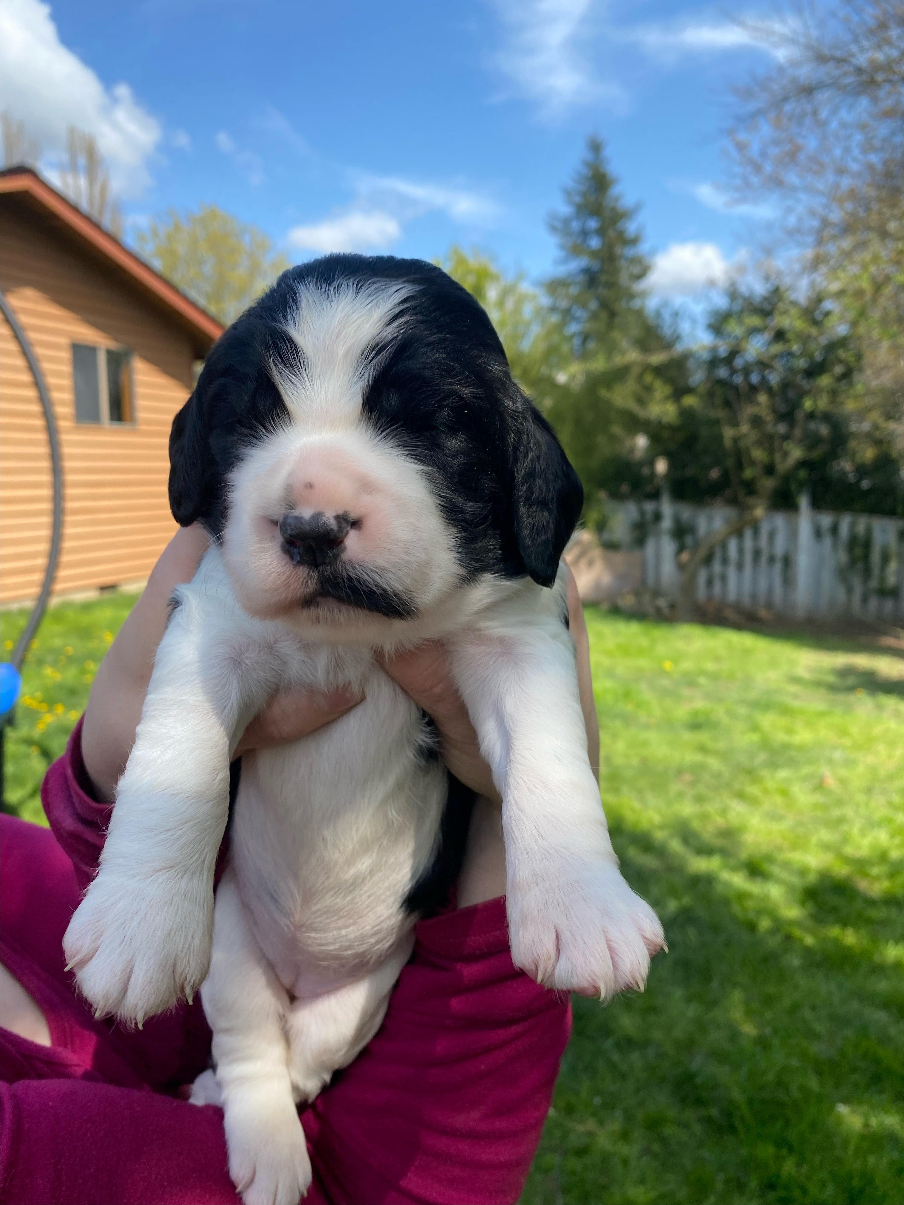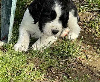 Our English Springer Spaniel puppies are black and white. Colors will vary depending on the parent dogs.