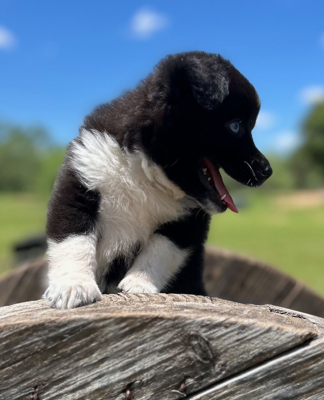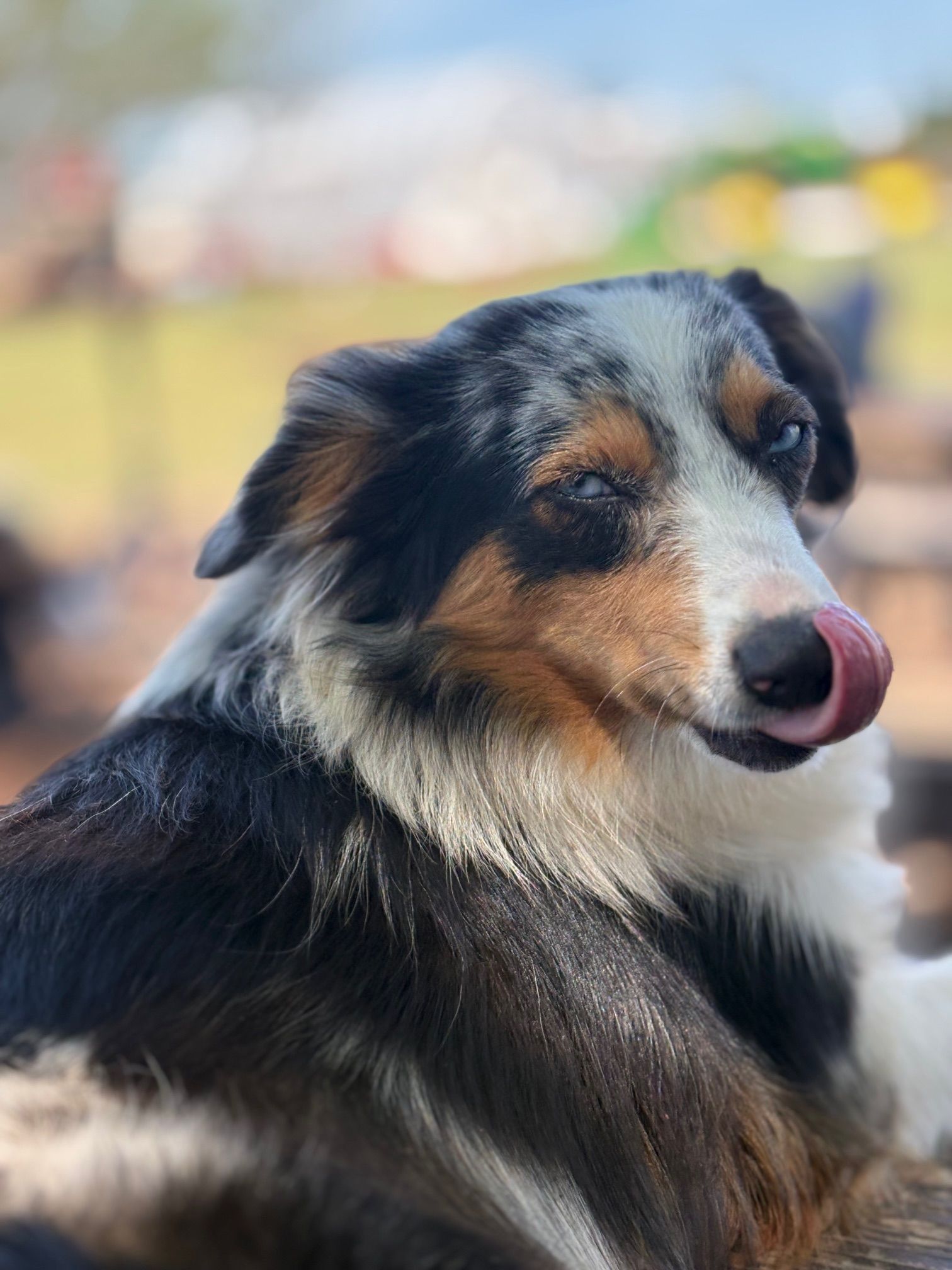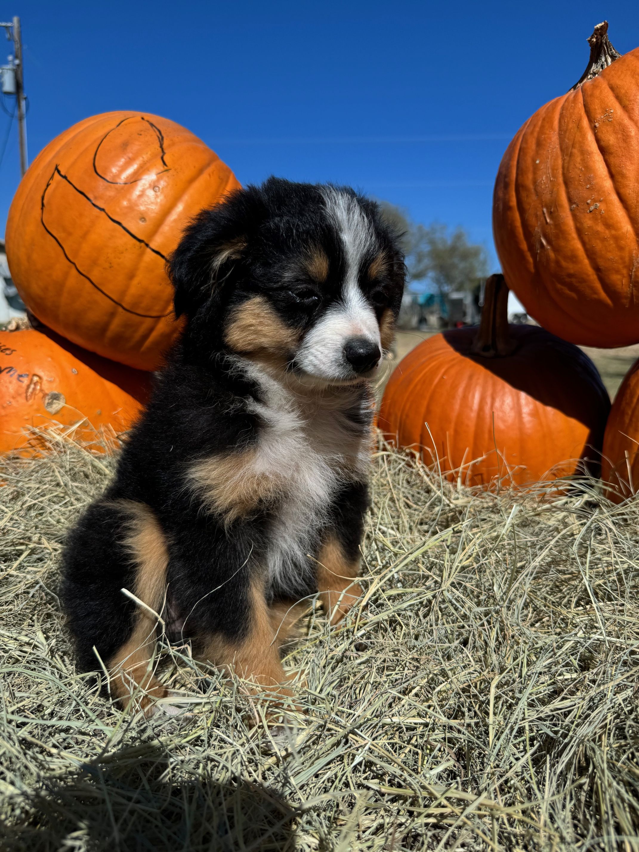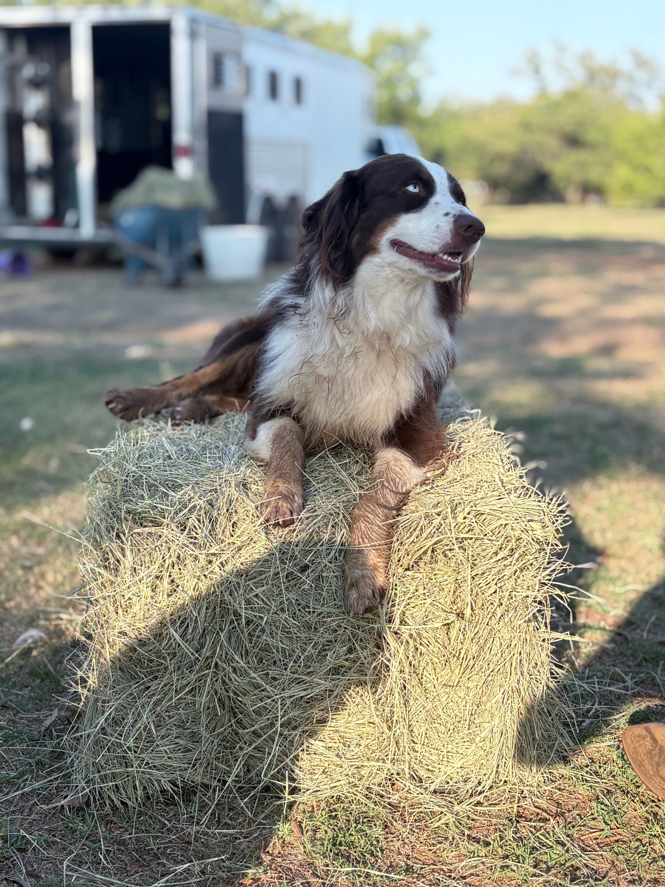 Laramie is stunning! Beautiful blue eyes and awesome colors. She's been a great mama too! LOVES the kids that visit us for camp days and riding lessons on the farm. Listens extremely well and is super friendly. She has had some of the most beautiful pups we've raised!
