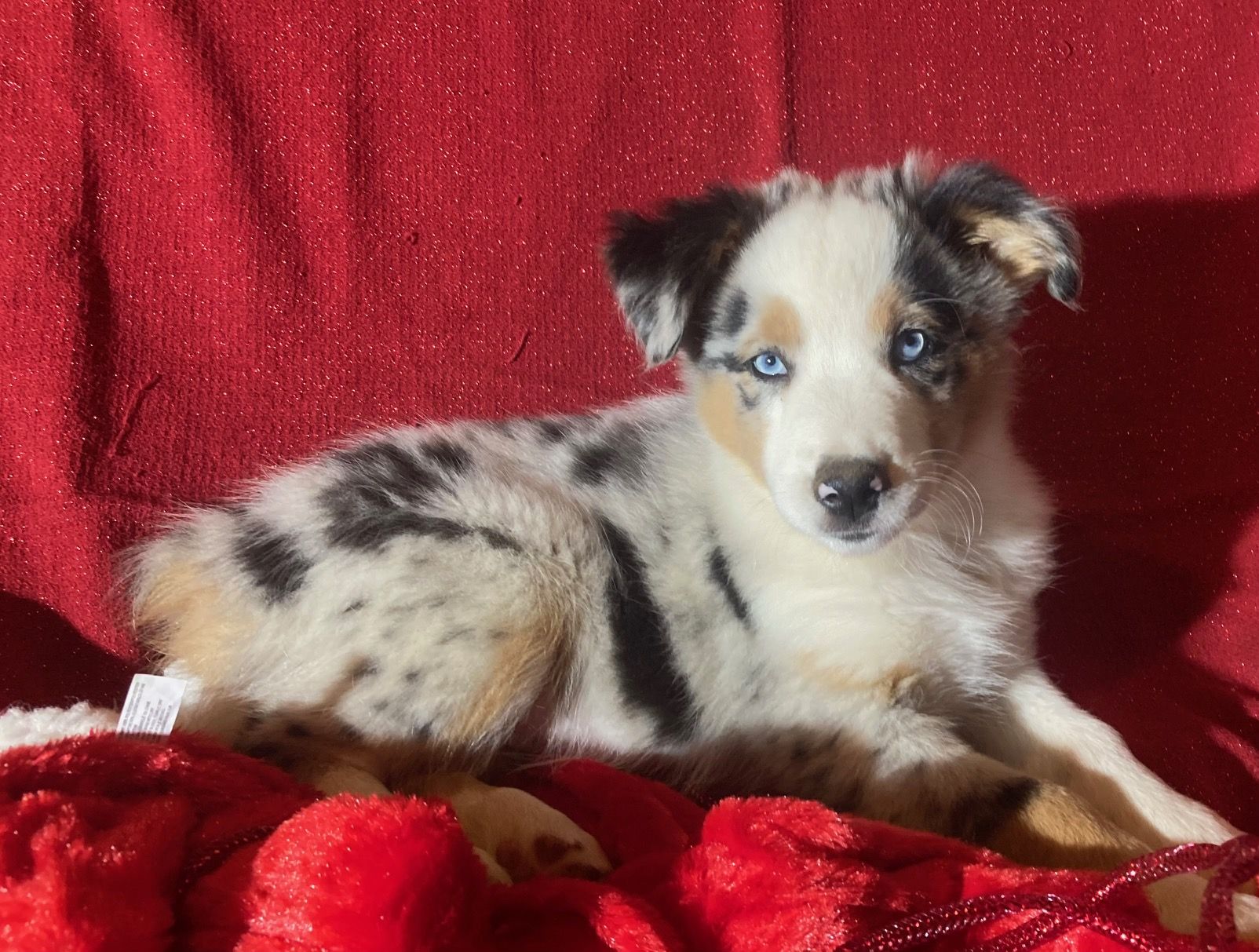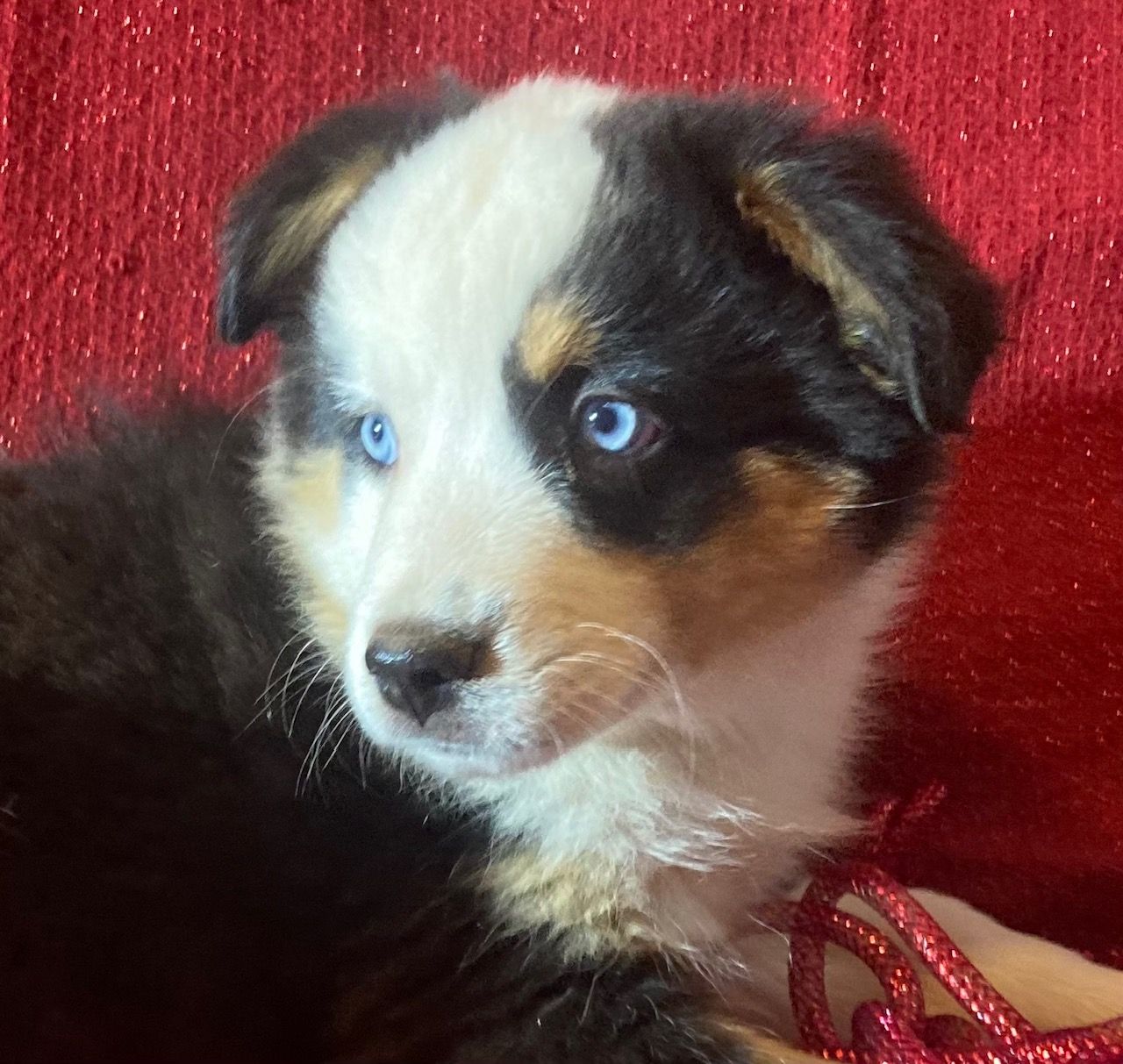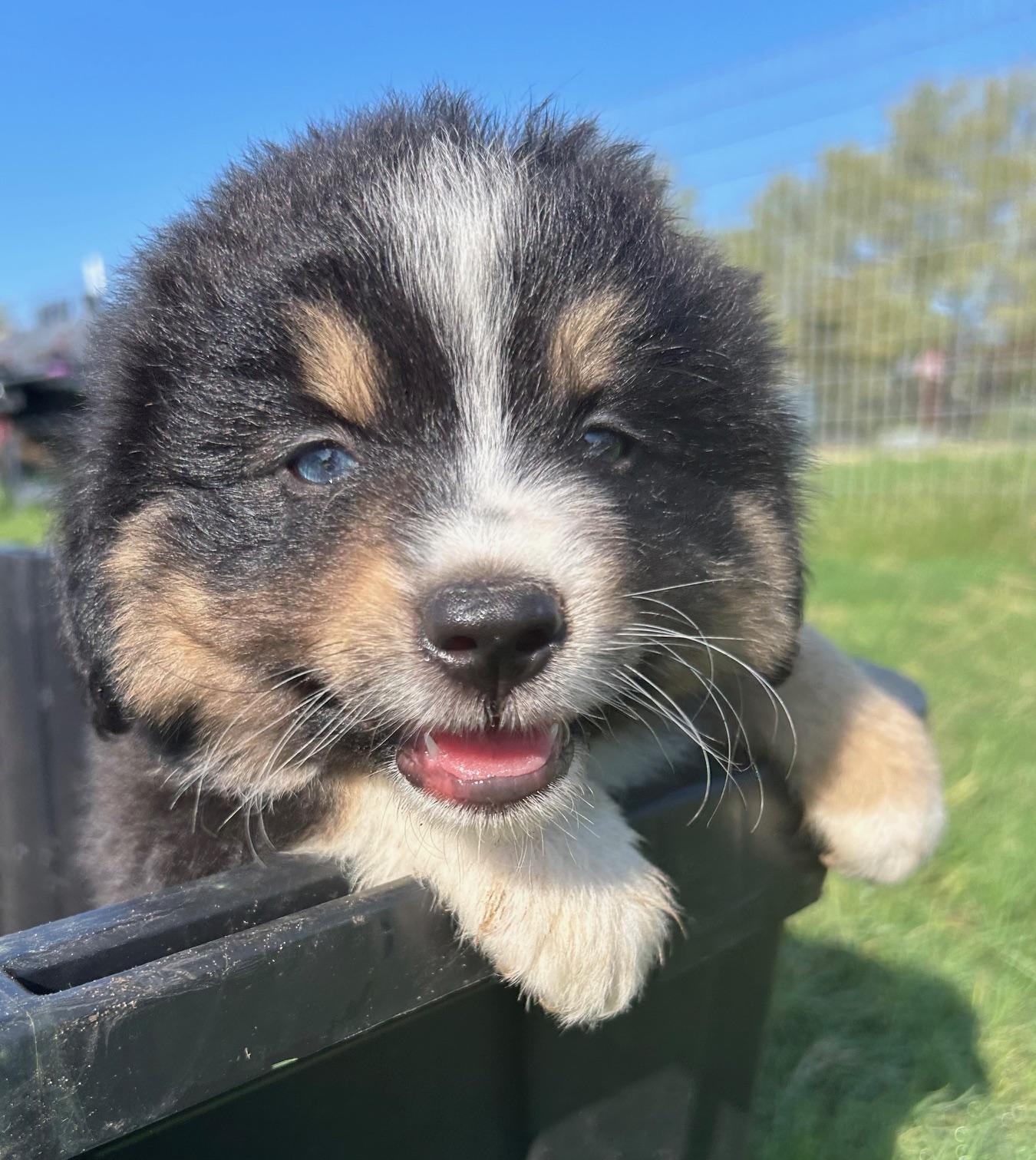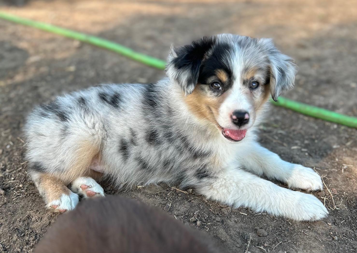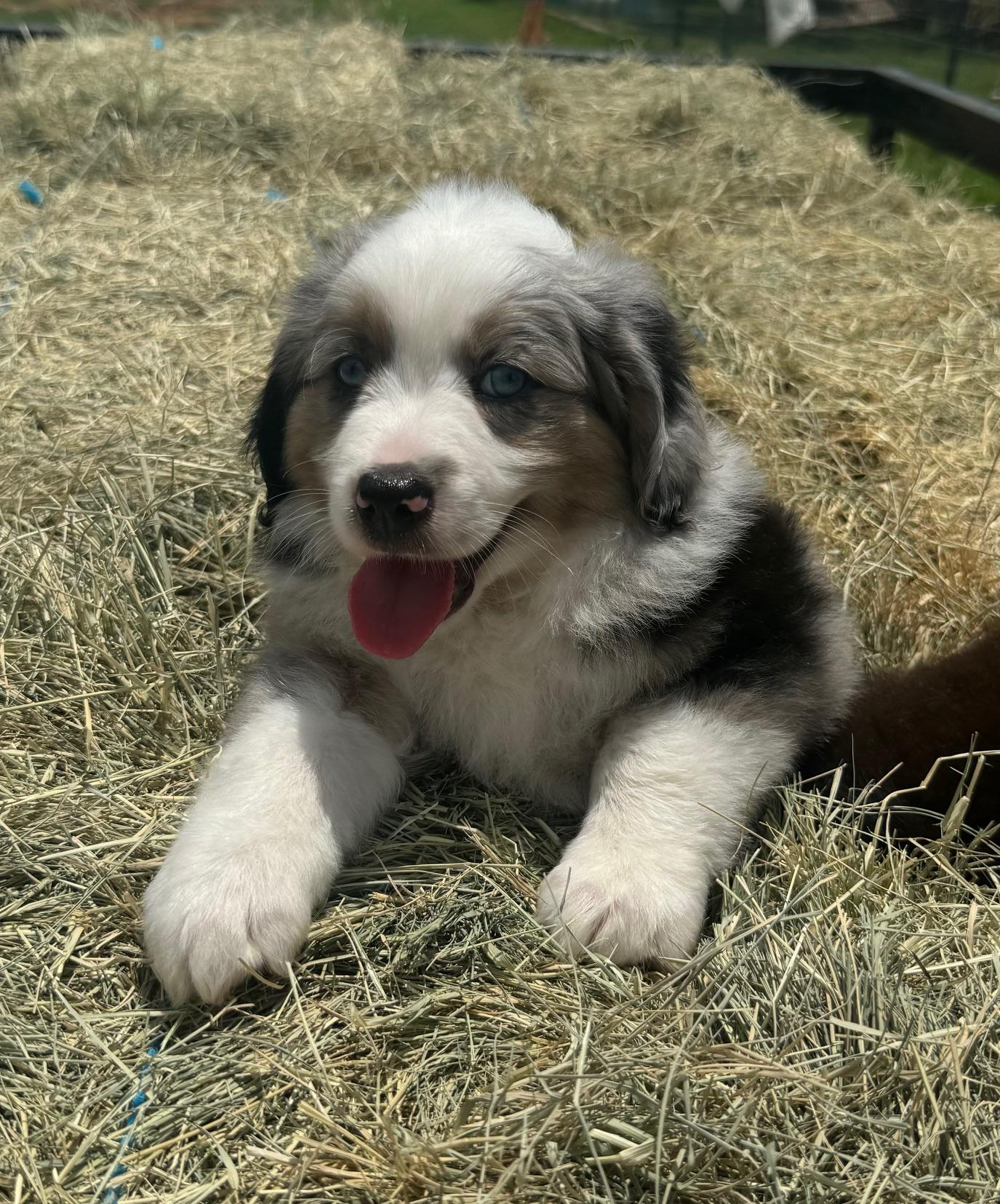 Our puppies include blue merle, black tri, red tri, and red merle. Colors will vary depending on the parent dogs.