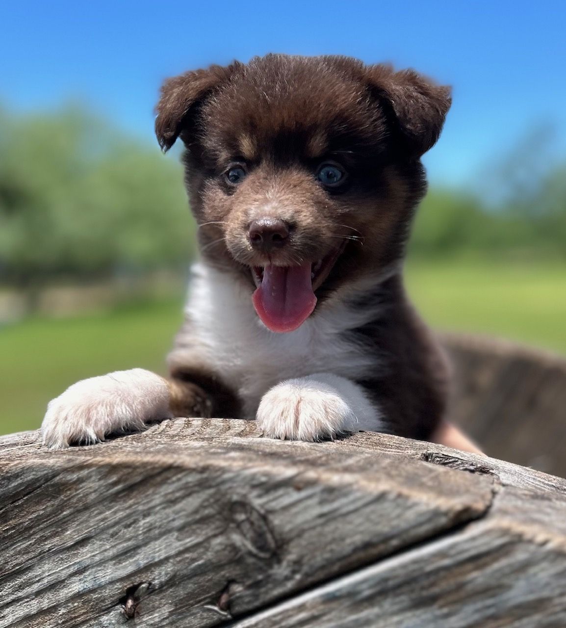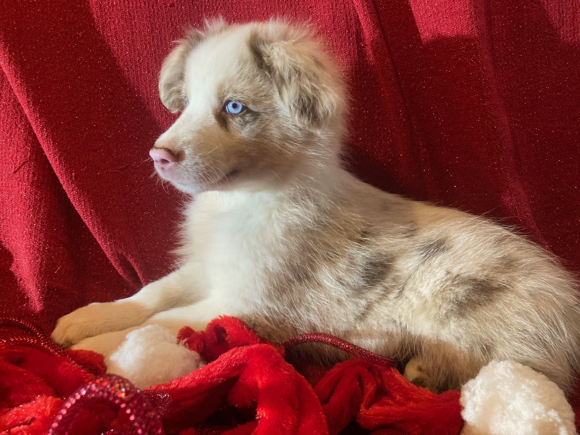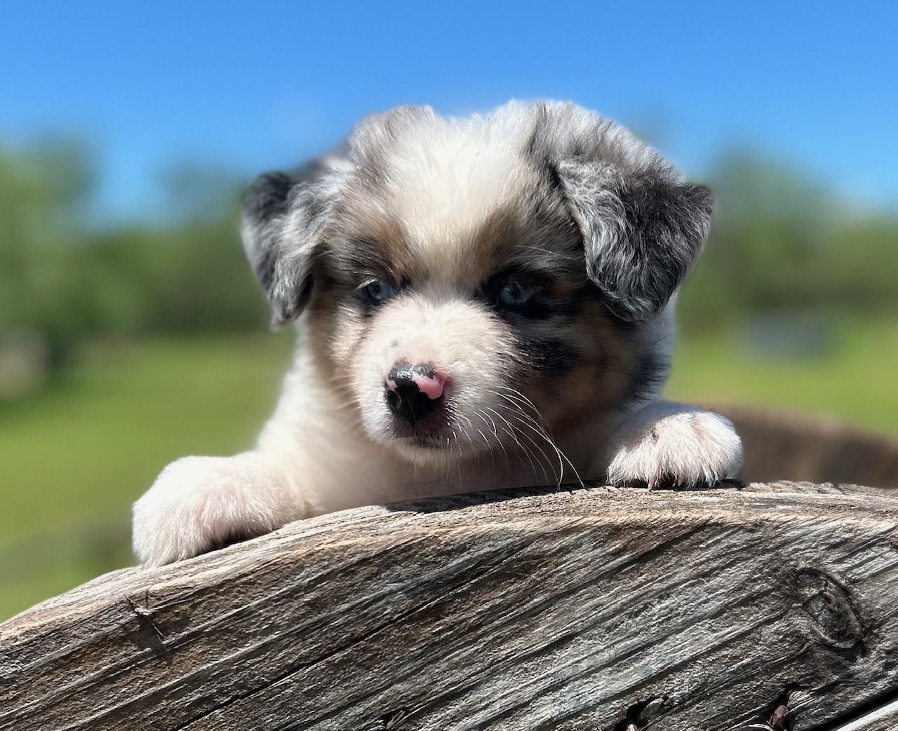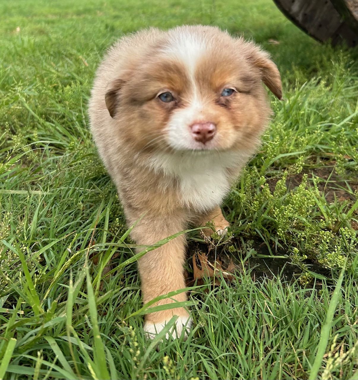 Our puppies include blue merle, black tri, red tri, and red merle. Colors will vary depending on the parent dogs.