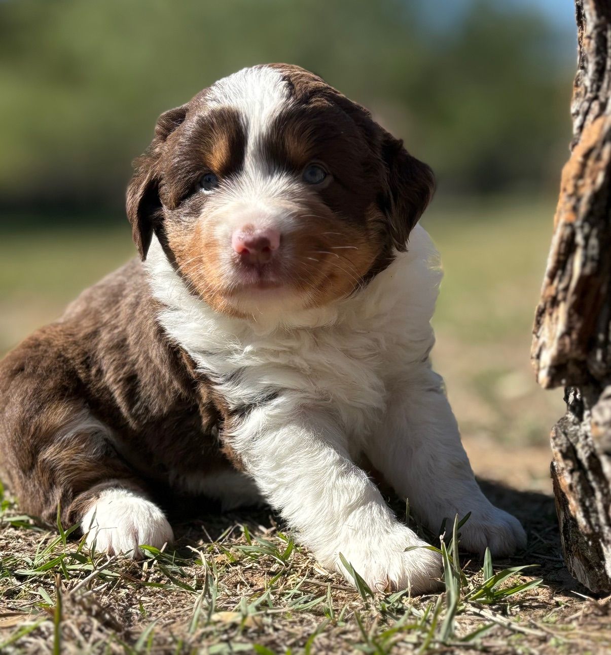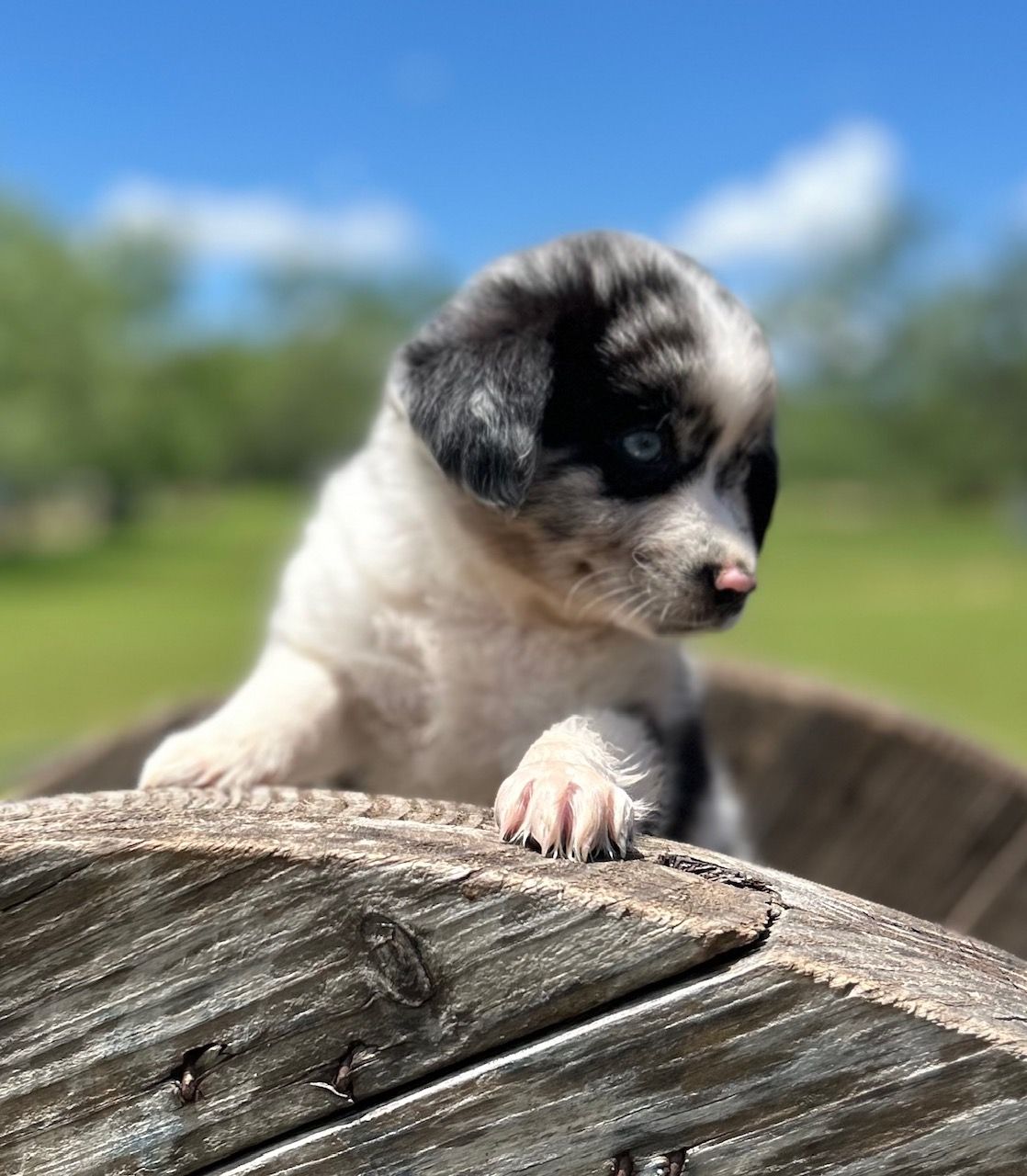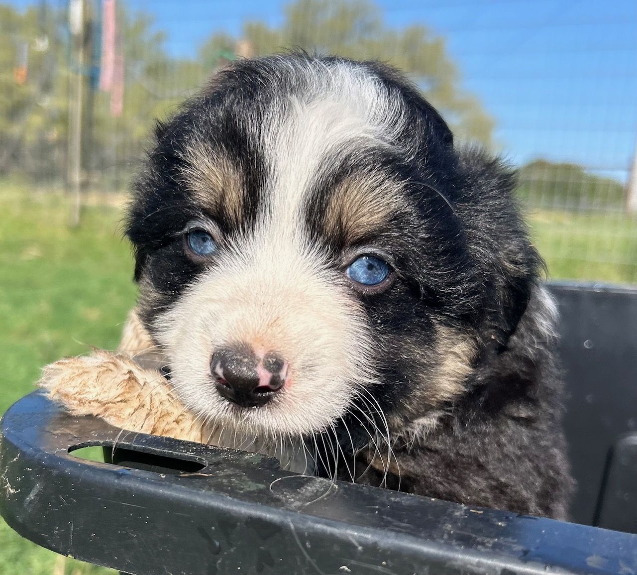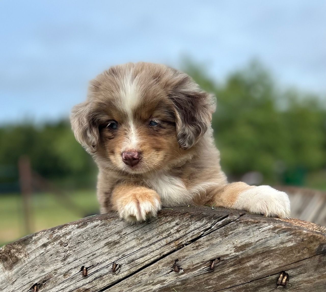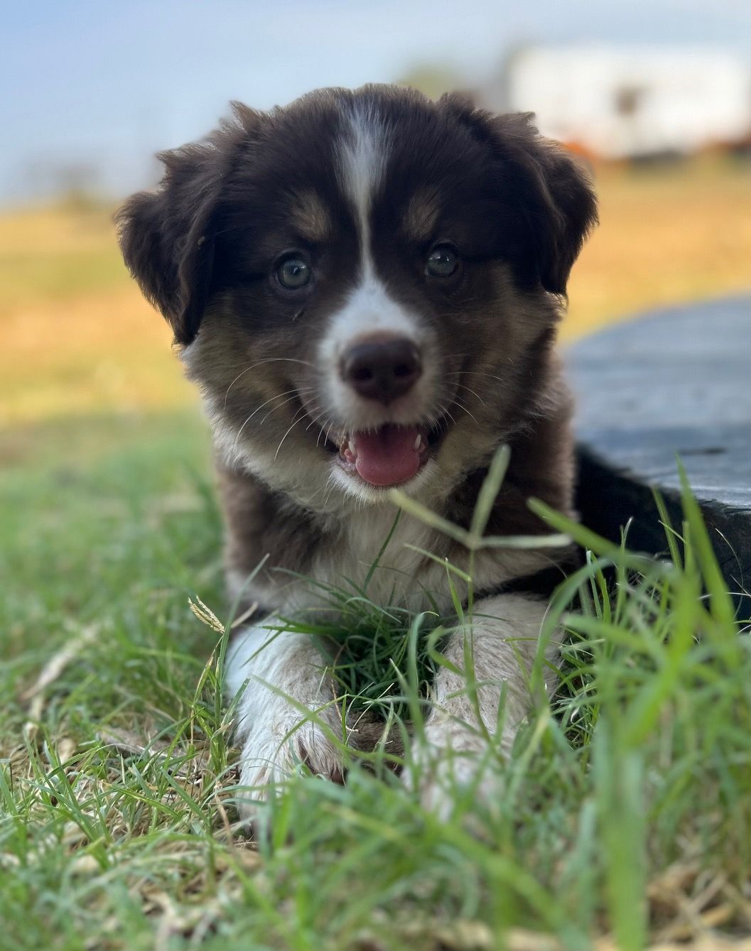 Our puppies include blue merle, black tri, red tri, and red merle. Colors will vary depending on the parent dogs.
