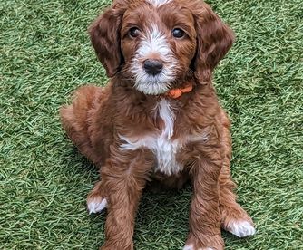 Mika is an f1 Goldendoodle with a sweet, gentle temperament. She’s a fantastic Momma to her puppies!