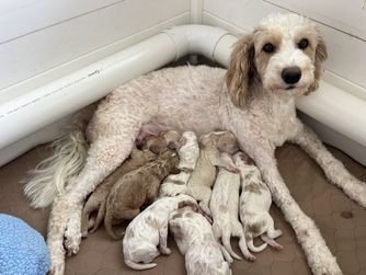 Our puppies include miniature, medium, and standard sizes. Sizes will vary depending on the parent dogs.