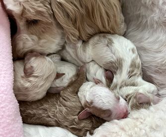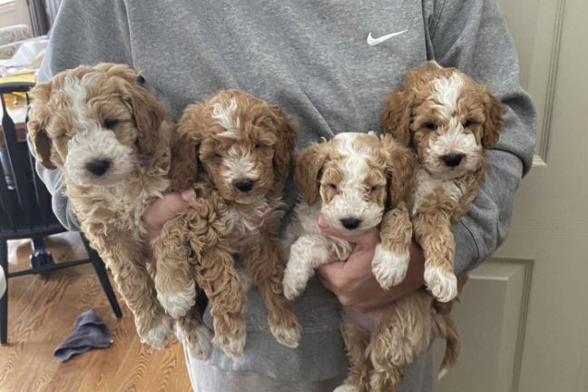 Our puppies include cream, apricot, red, and parti. Colors will vary depending on the parent dogs.