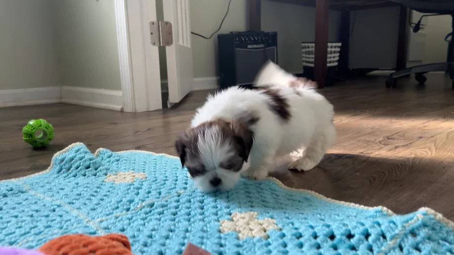 We are extremely happy with our sweet boy, Biscuit! The process from start to finish was so seamless and stress-free. Jimmy and Rowena shared weekly updates, photos, and videos and were happy to answer questions. We felt very secure in the weeks leading up to the big day (adoption!) and they set us up for success by providing a blanket from home, a toy, food, medical records, and other helpful resources. Our boy is so sweet, playful, and smart! My husband and I grew up with Shih Tzus and this was our first time adopting our own dog. I couldn’t recommend Jimmy and Rowena enough. If you’re thinking about adopting a Shih Tzu, this is your sign to do it with these fantastic breeders!
