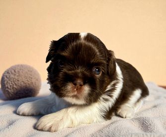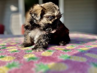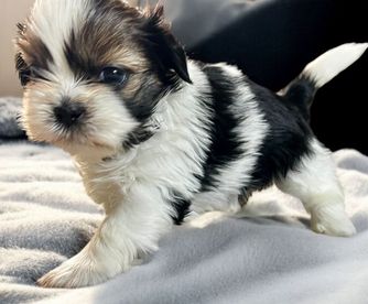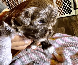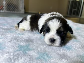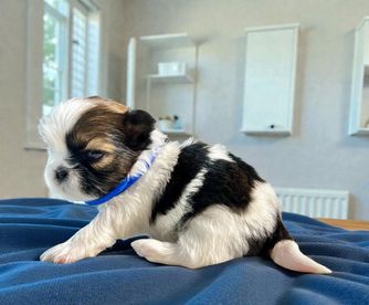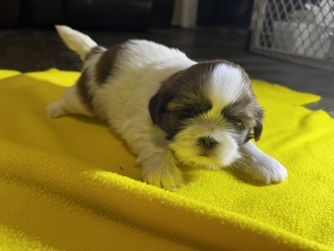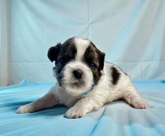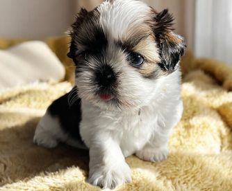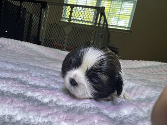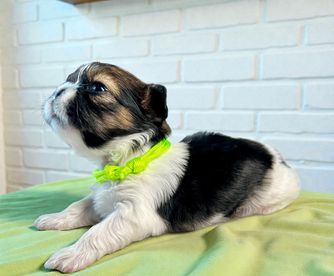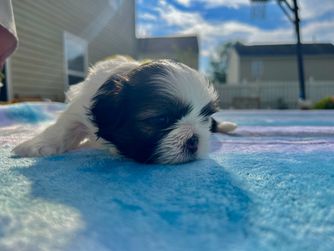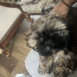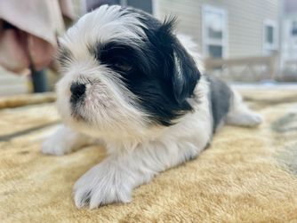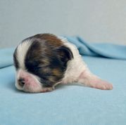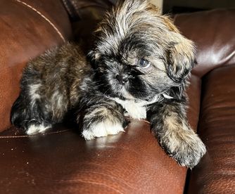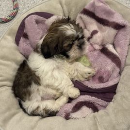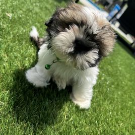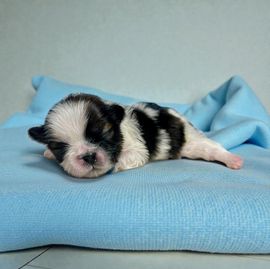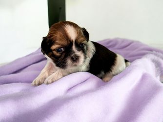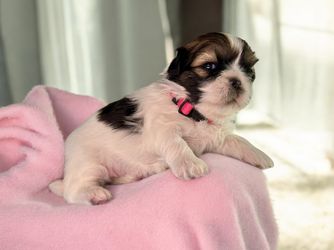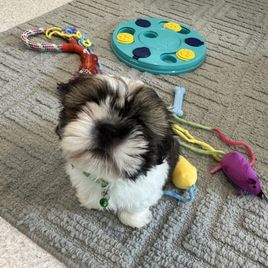 Juji is a super sweet and very affectionate AKC-registered Shih Tzu girl with a tricolor coat of black, brown, and white. She has a calm, friendly nature and loves being close to her people. Her gentle demeanor and affectionate personality are a blessing to our family.