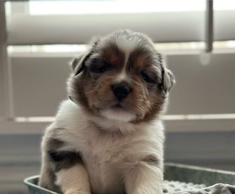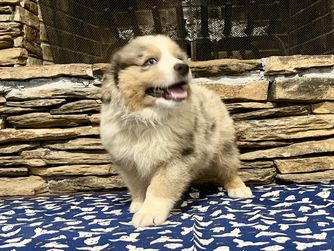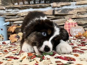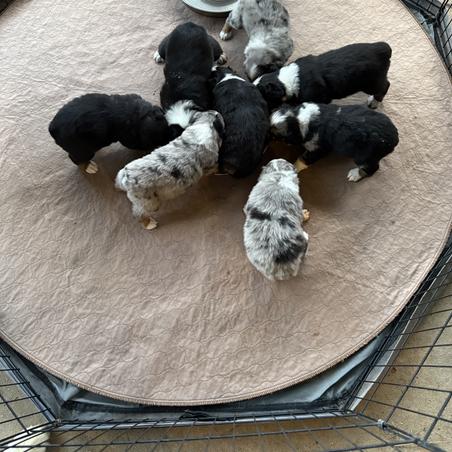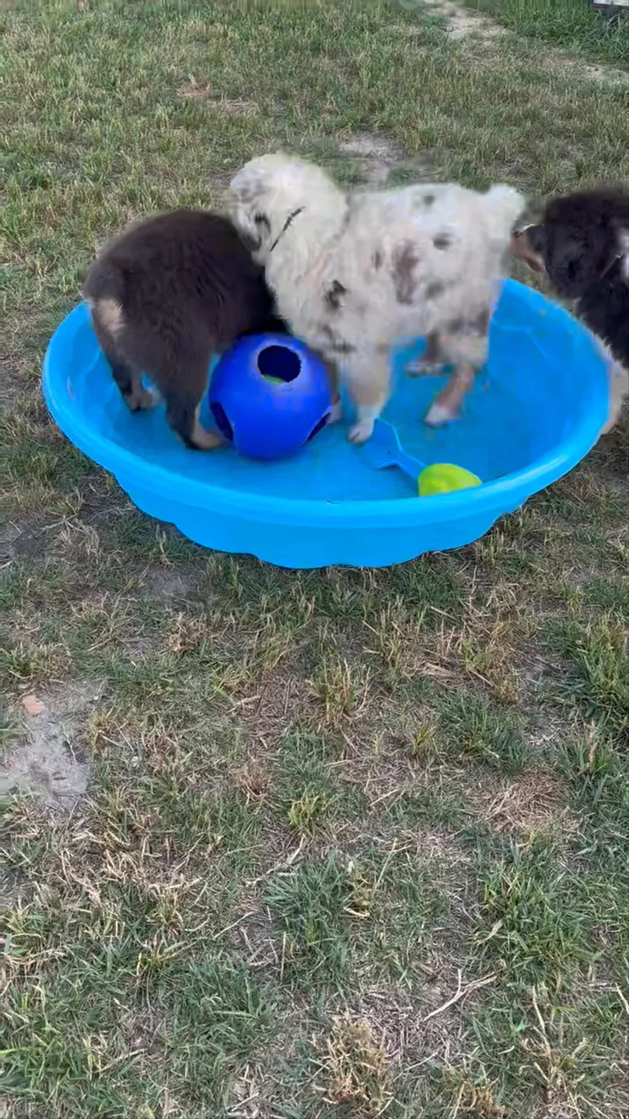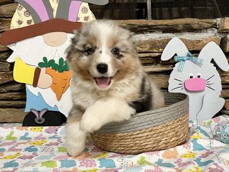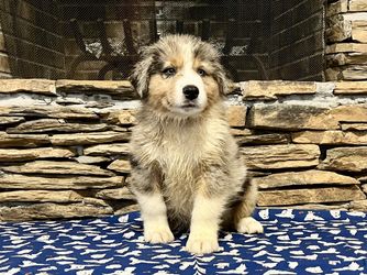 Our puppies include blue merle, black tri-color, and red tri-color. Colors will vary depending on the parent dogs.
