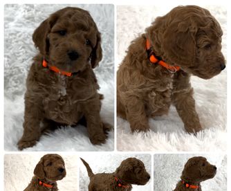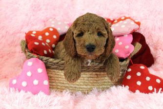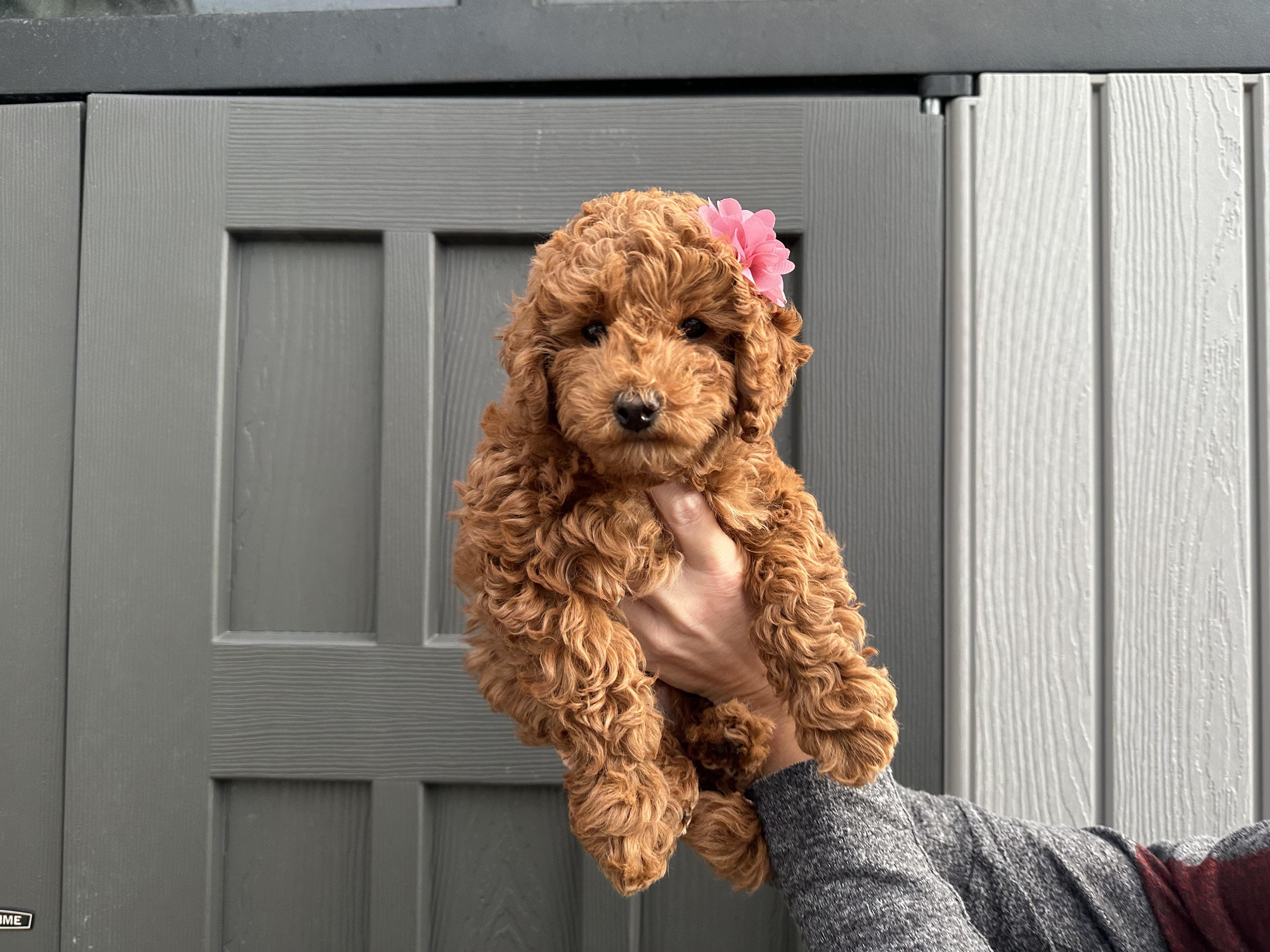 Our puppies include apricot and red. Colors will vary depending on the parent dogs.