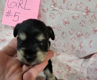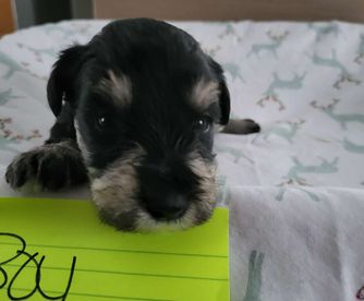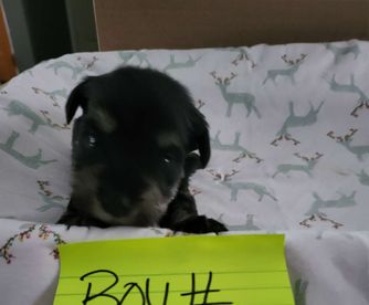Our puppies are black and silver. Colors will vary depending on the parent dogs.