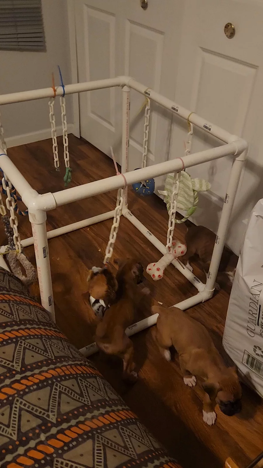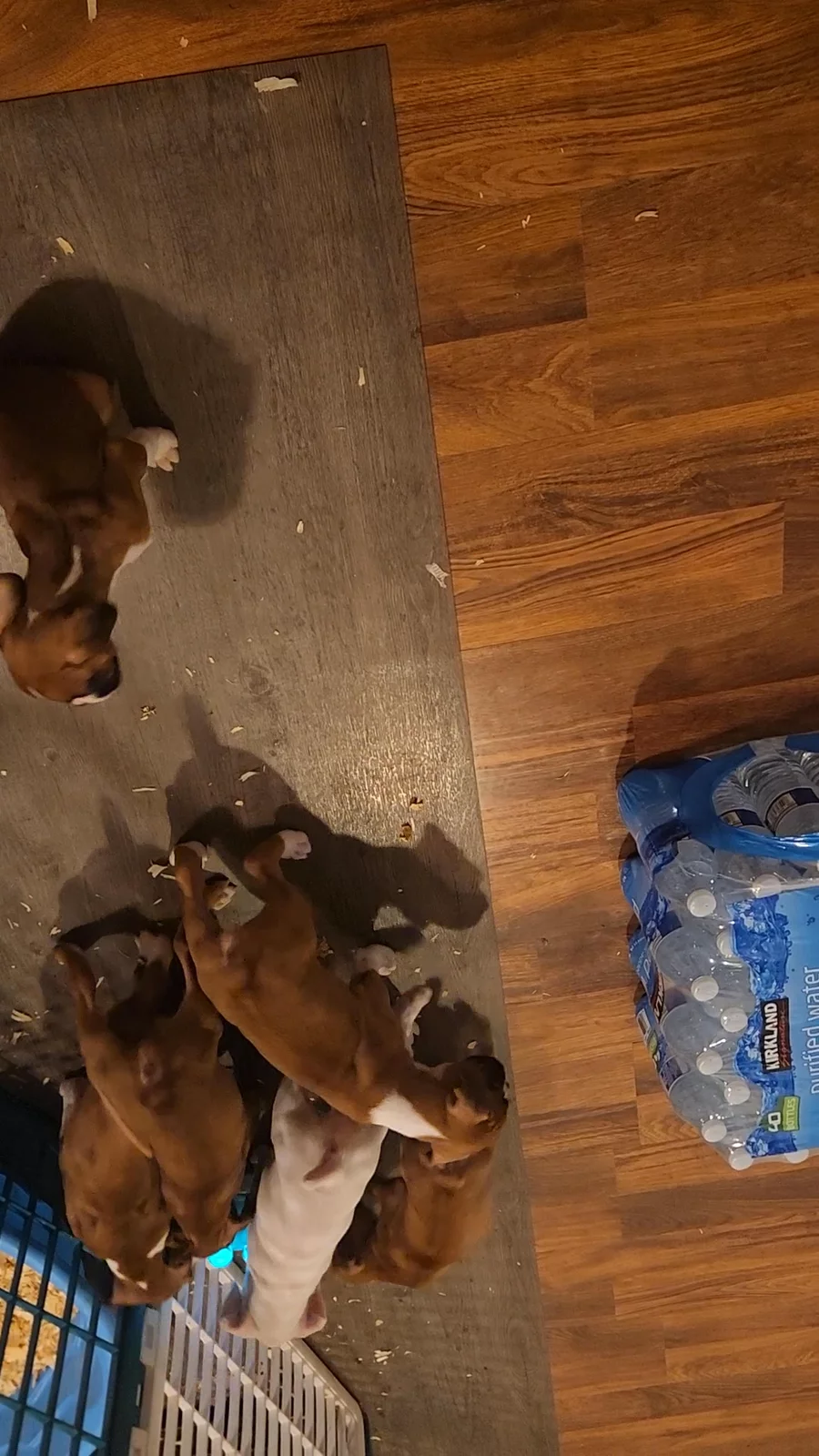 Our puppies include fawn, brindle, and white. Colors will vary depending on the parent dogs.
