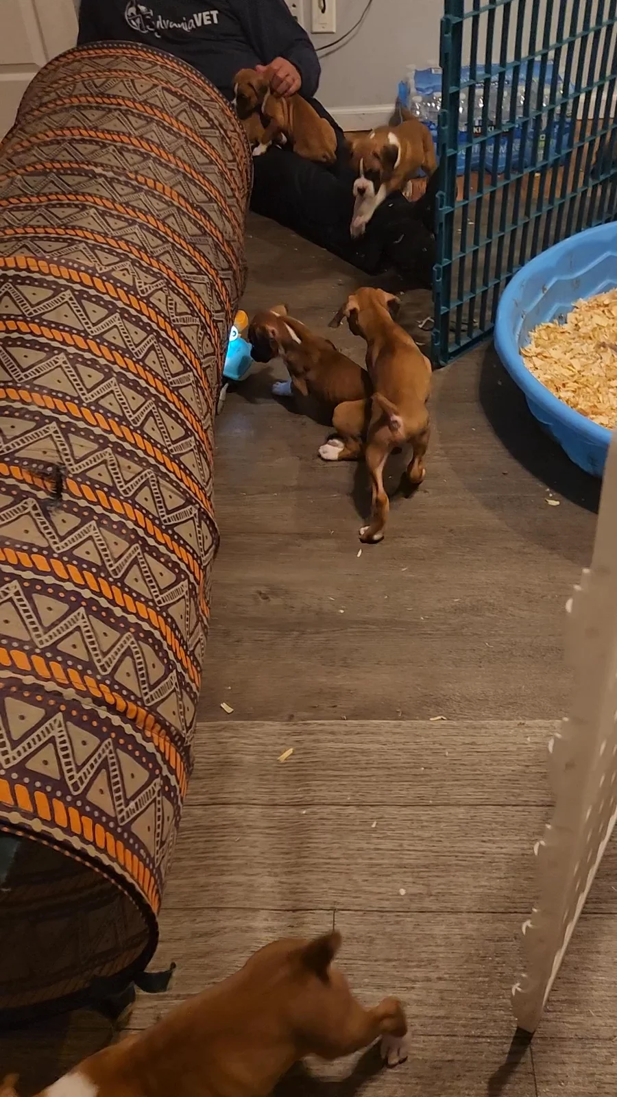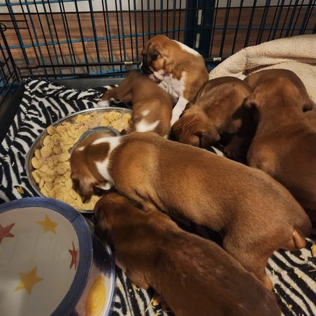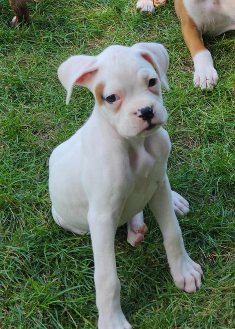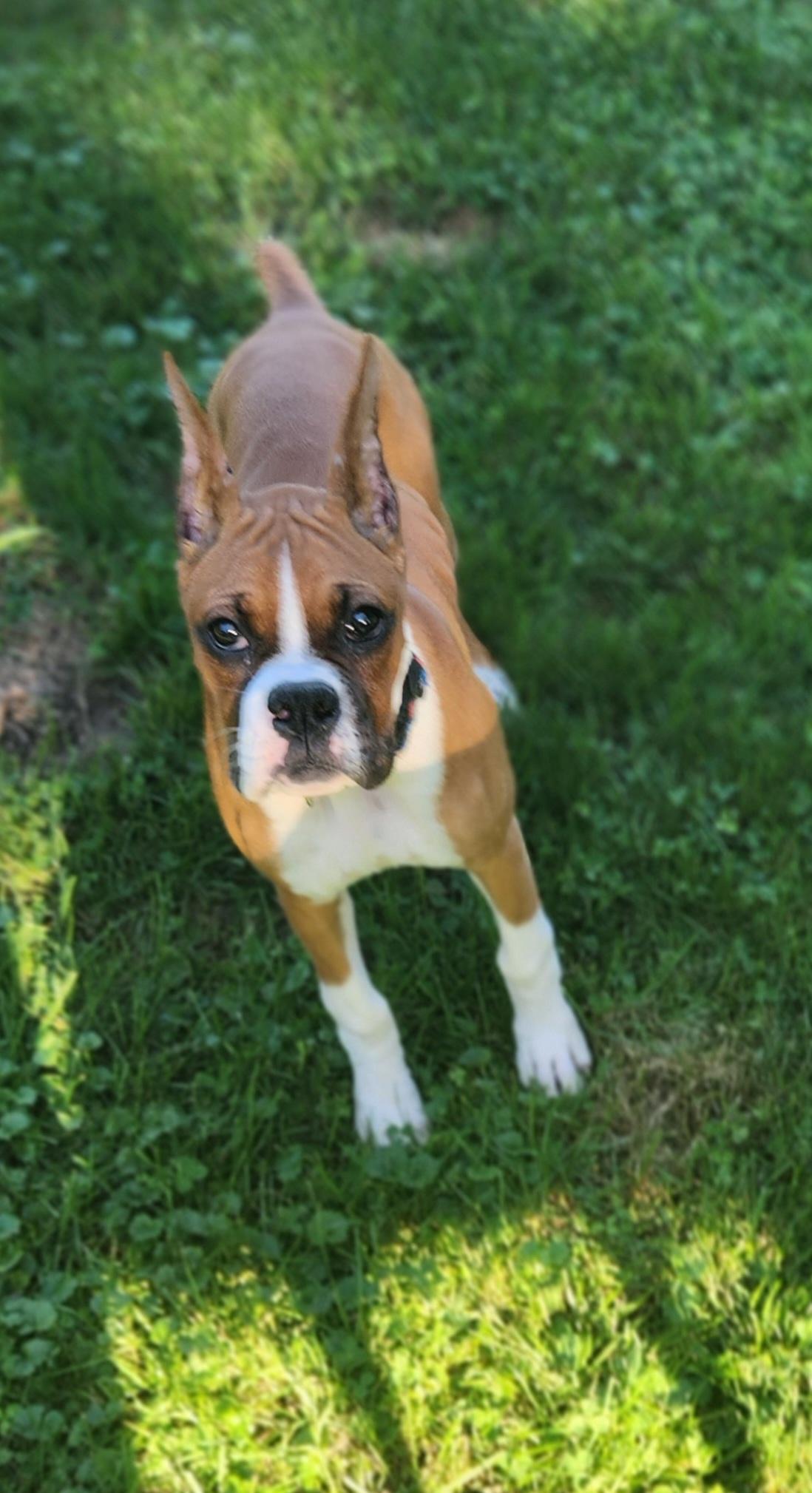 I'm Julie W., the breeder behind Julie Wilmore Olympic Boxers located in Toledo, OH. Our goal is to provide families with a healthy, happy, well-socialized, and balanced addition to their family that will do the boxer breed proud. Our puppies come from health tested and certified by OFA parents. They are raised in our home around our other dogs. We strive to give our puppies the very best start to their lives.