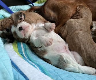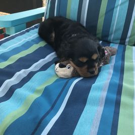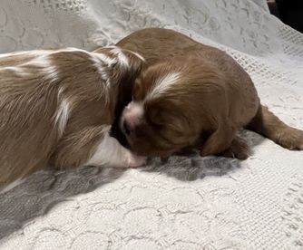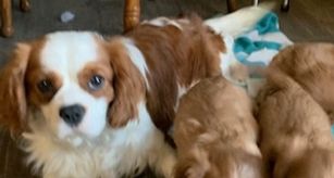 Julie was absolutely wonderful to work with! She was happy to answer any questions and sent lots of sweet updates on Finneas (formerly Oliver). Its great knowing how much she cares about her puppies and you can tell they have been loved. Our puppy has settled into our family beautifully. Hes doing amazing with potty training, loves to play with his 2 big dog siblings and of course is already my little shadow. We can't recommend her highly enough if youre looking to add a cav to your family.