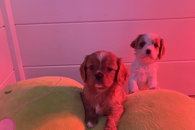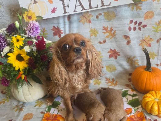 Our puppies include blenheim, ruby, black and tan, and tri-color. Colors will vary depending on the parent dogs.