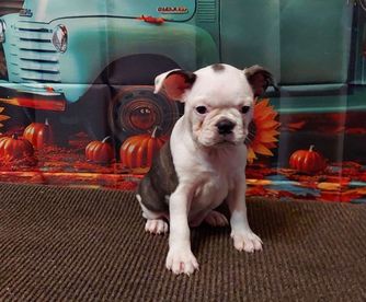 Our puppies include seal brindle and white, black brindle and white, and black and white. Colors will vary depending on the parent dogs.