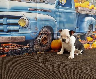 Fatty patty is a female Boston Terrier. Carefully selected as a great representative of her breed, Julie decided to make her part of their program. Julie has passed Good Dog’s screening process, which involved a review of their breeding practices, environment, and the mental and physical health of their dogs.