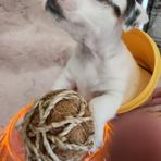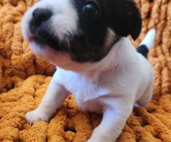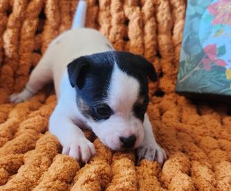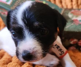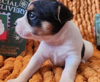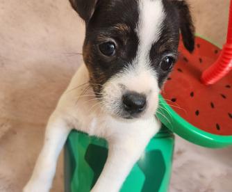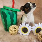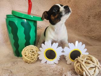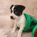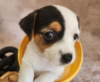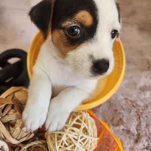 I'm Cindy H., the breeder behind Jumping Jack's Russell Terriers located in Apple Valley, CA. Our dogs are brought up inside my home where we give them socialization with my other pets. I live on a acer and a half fully fenced property where they can experience all kinds of things. These puppies are breed to be loving dogs and at the same time make wonderful HUNTERS for vermin. They usually love to play ball and can jump pretty high for their small size. They are learning not to tear up my garden of flowers. They love playing with my long hair Chiwawa and walk all over my Shepherd. My neighbors have dogs and chickens that they see. I have quite a bit of car traffic their used too. Of course I hold them alot and we are working on not jumping on me. They have sharp little puppies nails right now. Their going to make anyone happy to own one of these pups.