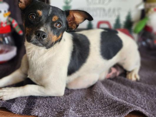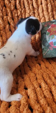 Roxy is a very loving dog. She is very smart. She makes me laugh all the time. She runs so fast she can keep up with my Shepherd. These dogs can hold their own with big dogs. She is well adjusted. When she runs, she reminds me of Super Dog. They have the cutest way of running. Roxy is rare with her large spots. Unfortunately she dose not throw puppies with these large spots. You can look at my previous litter you will see she has puppies that look like your true Parsons Russell. She throws broken coats and smooth coats.