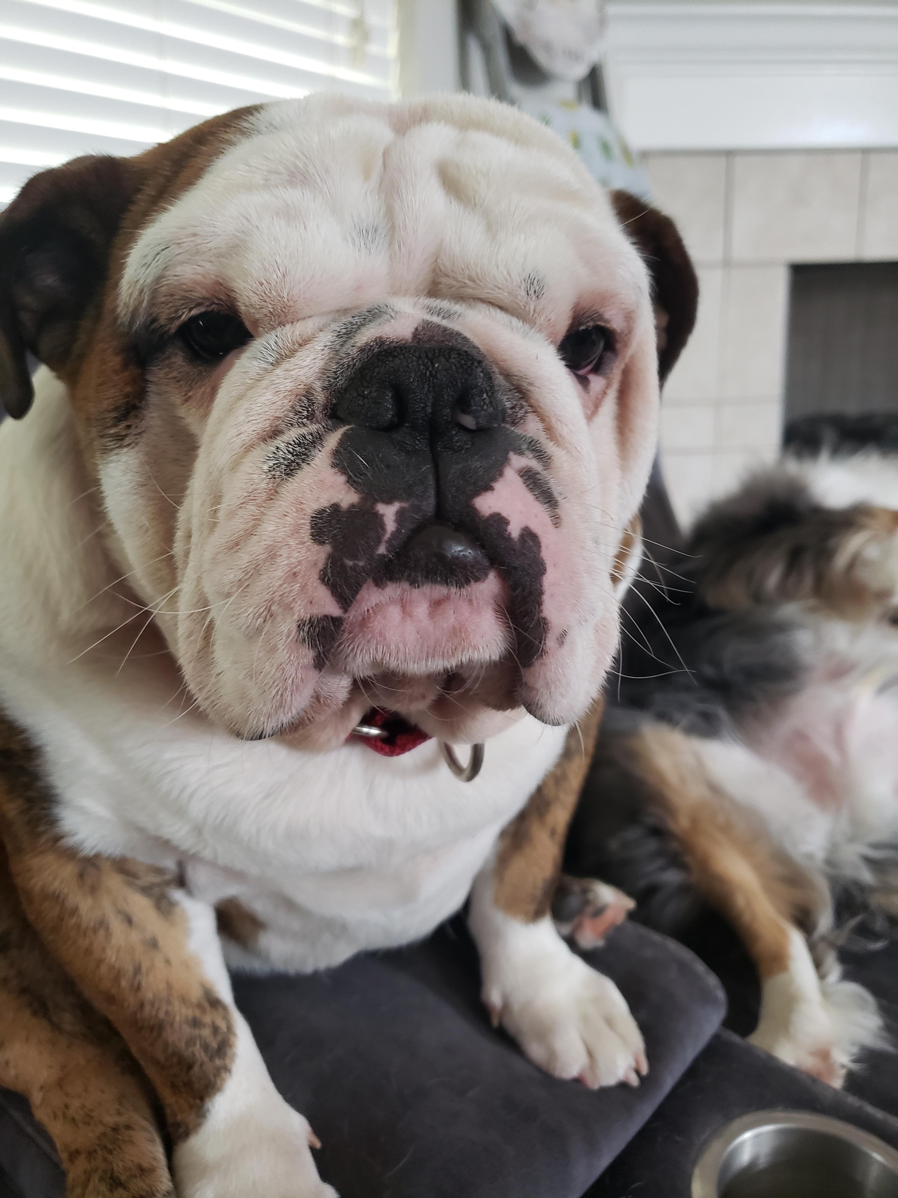 Ruby is a female Bulldog. Carefully selected as a great representative of her breed, Laurie decided to make her part of their program. Laurie has passed Good Dog’s screening process, which involved a review of their breeding practices, environment, and the mental and physical health of their dogs.