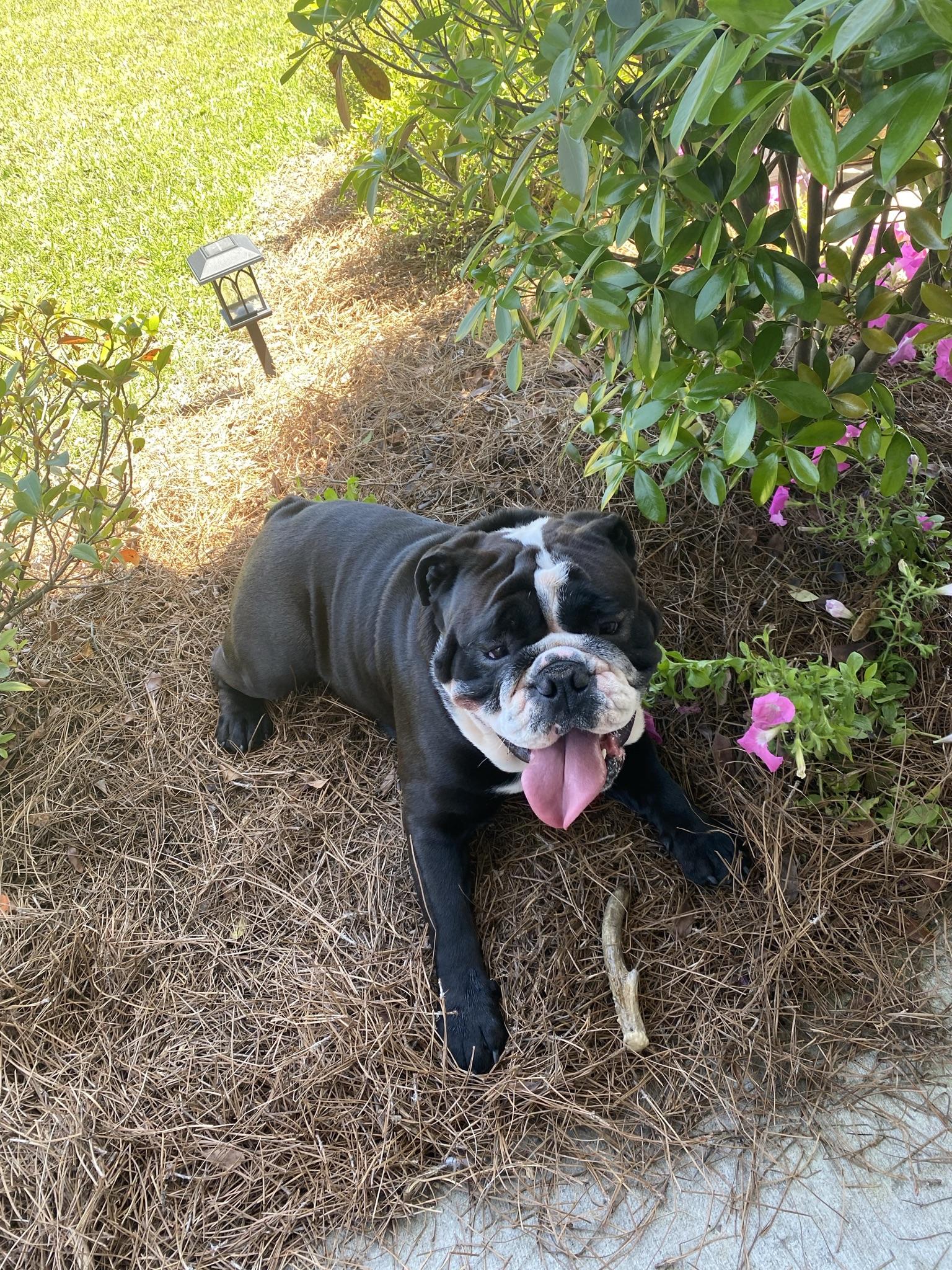 Rosco is a male Bulldog. Carefully selected as a great representative of his breed, Laurie decided to make him part of their program. Laurie has passed Good Dog’s screening process, which involved a review of their breeding practices, environment, and the mental and physical health of their dogs.
