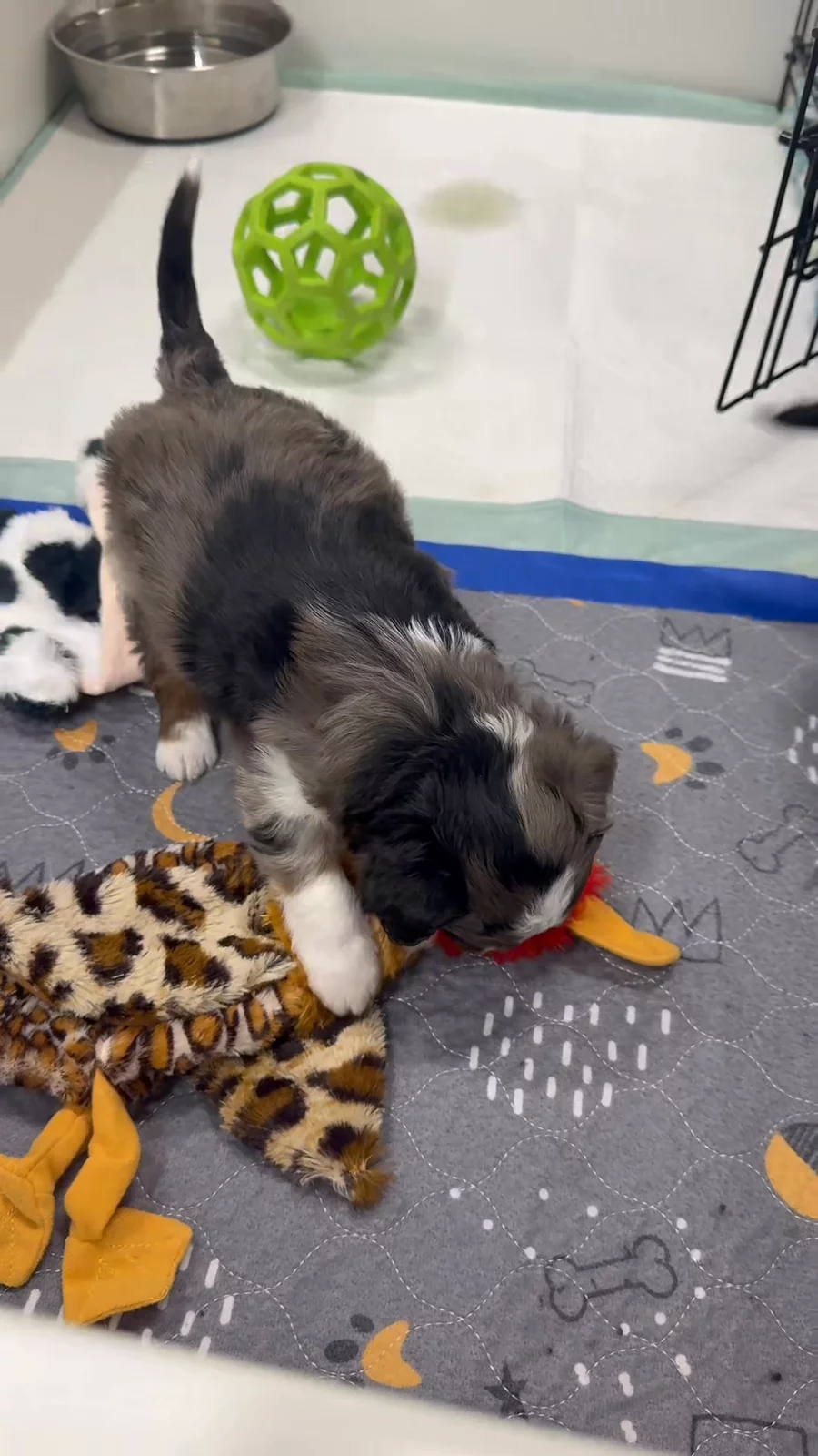 5 weeks old today! Crate intro & more play space!